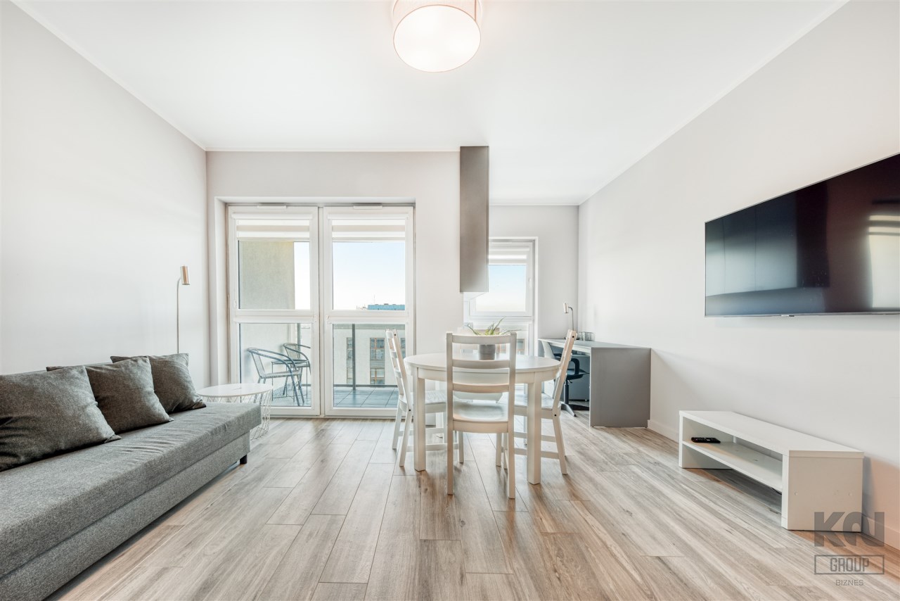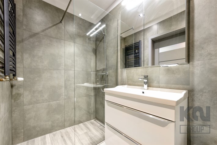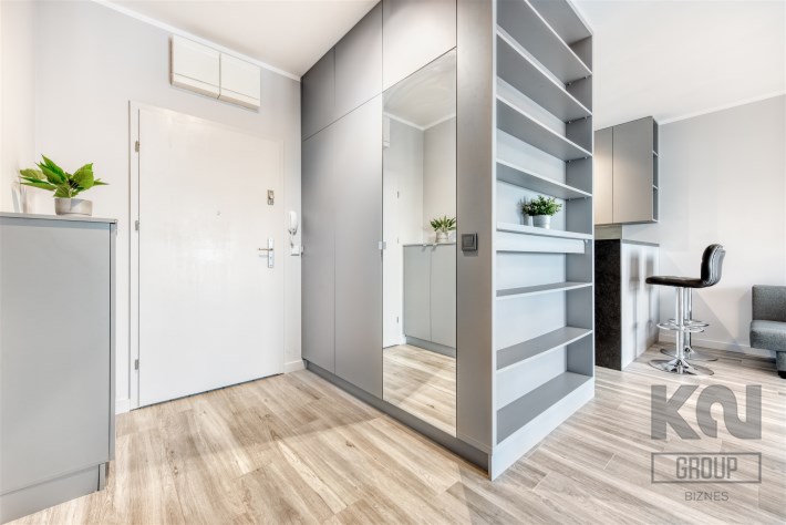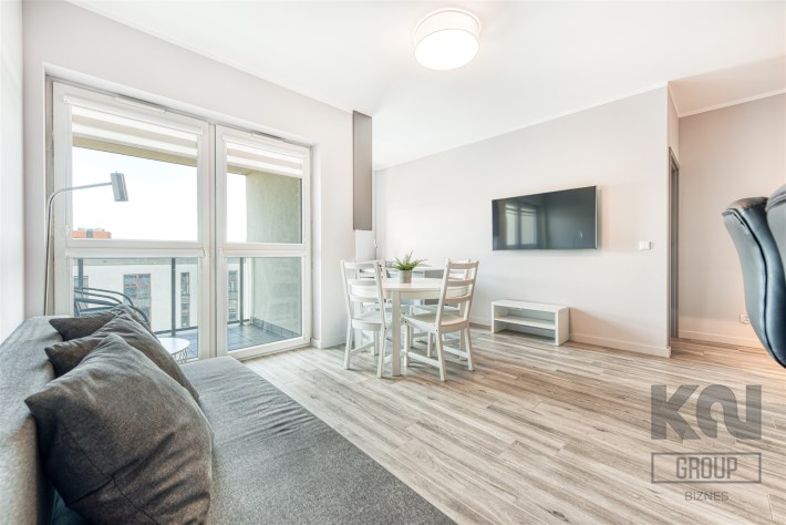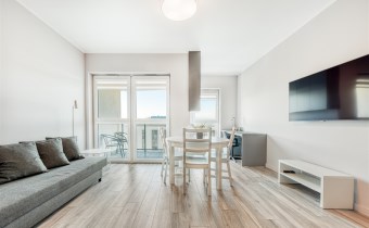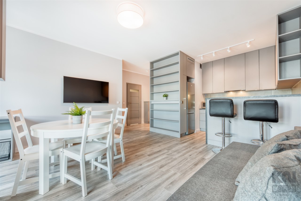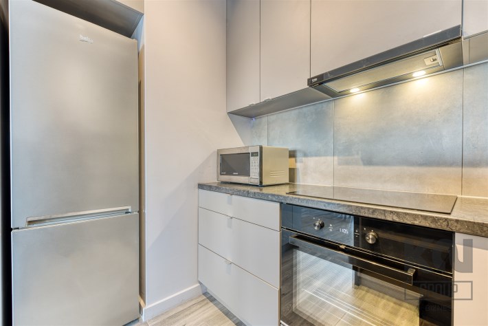 - kompletnie wyposażony aneks kuchenny (płyta indukcyjna, okap, piekarnik, zmywarka, lodówko-zamrażarka, kuchenka mikrofalowa, drobne wyposażenie kuchenne);