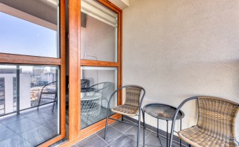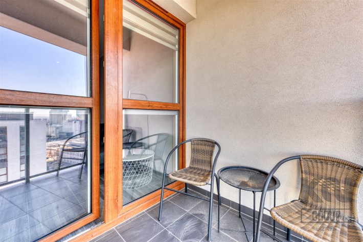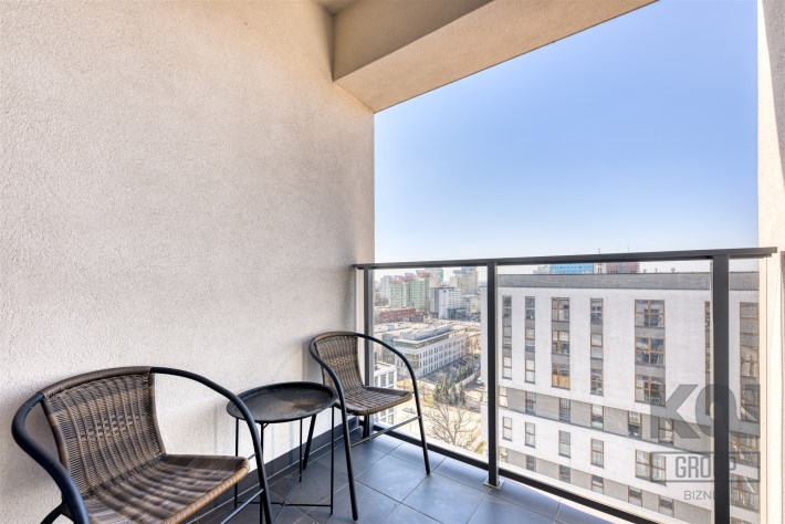 - mały balkon, z którego rozpościera się piękny widok na panoramę miasta;