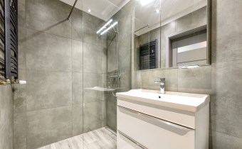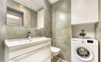 - łazienkę z WC wyposażoną w kabinę prysznicową i pralkę;