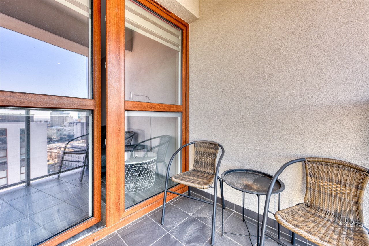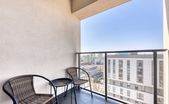 - mały balkon, z którego rozpościera się piękny widok na panoramę miasta;