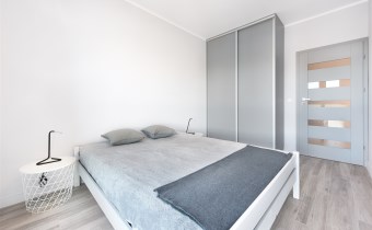 - przytulną sypialnię z dużym łóżkiem i pojemną szafą;