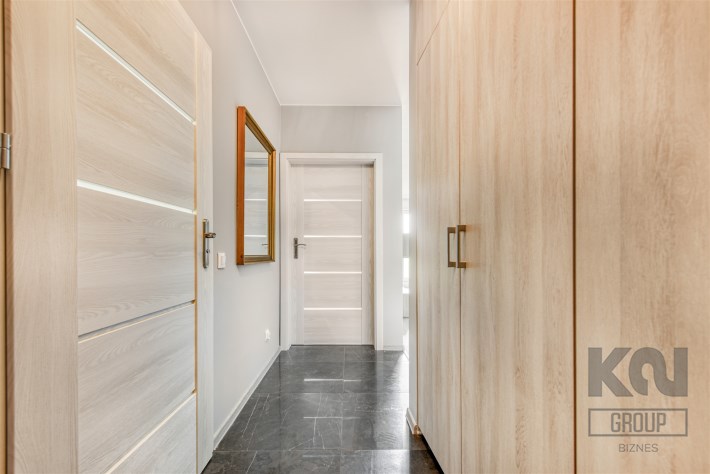 - przytulną sypialnię z zabudowaną szafą i drugim wyjściem na balkon;