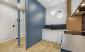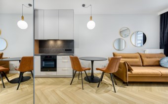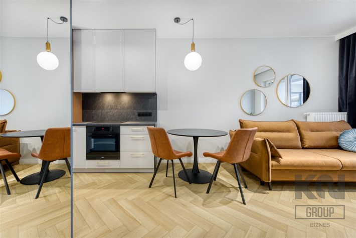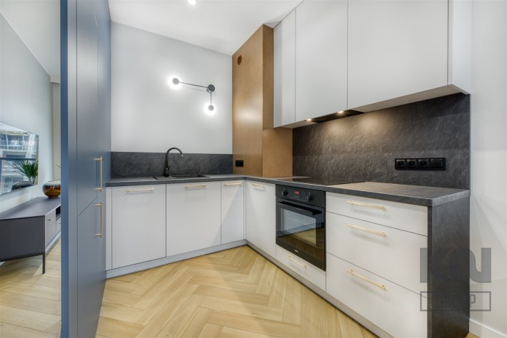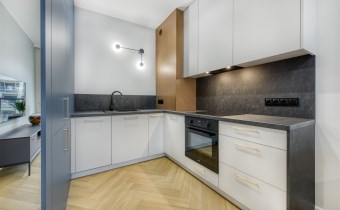 - aneks kuchenny wyposażony w płytę indukcyjną, piekarnik, zmywarkę i lodówko-zamrażarkę;