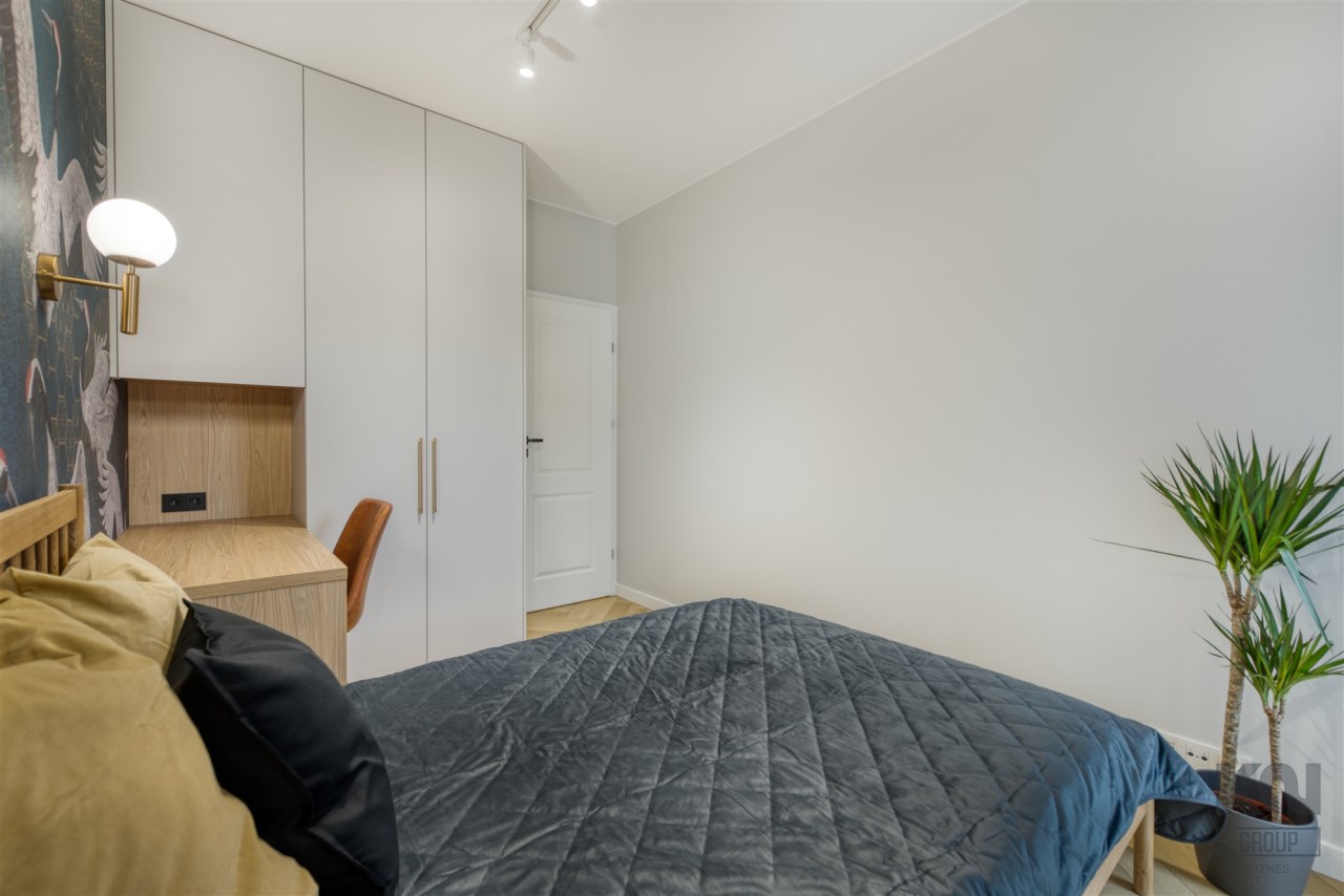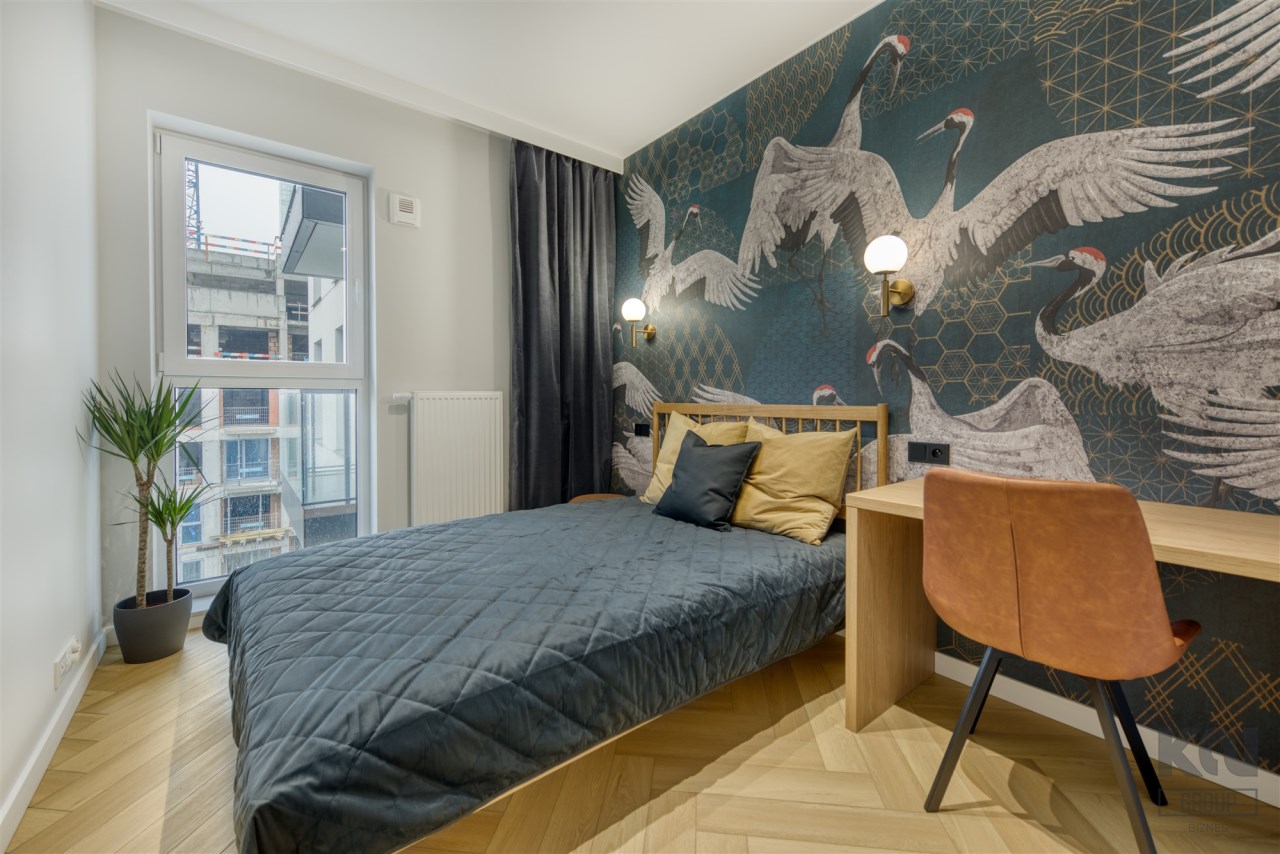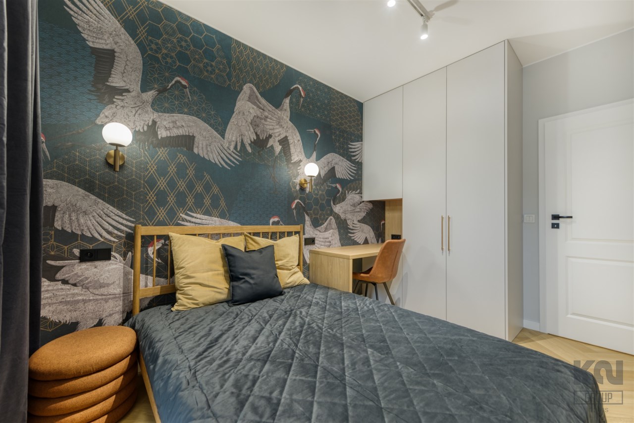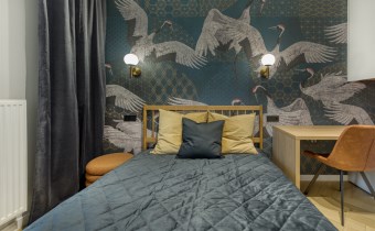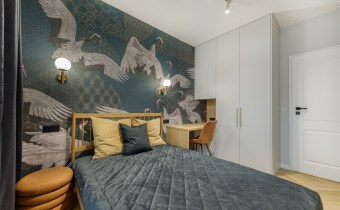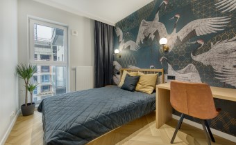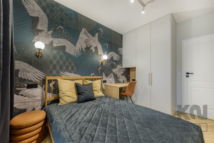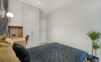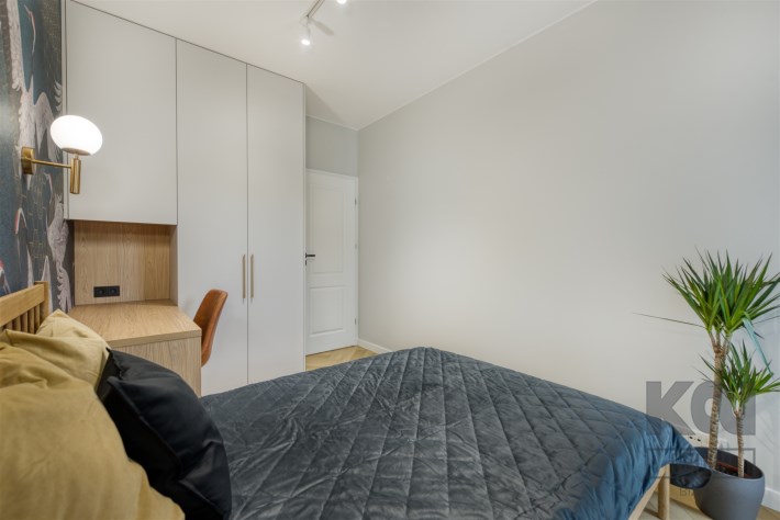 - sypialnię z wygodnym łóżkiem, pojemną szafą i wydzielonym miejscem do pracy;