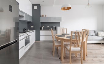 - aneks kuchenny wyposażony w płytę indukcyjną, okap, piekarnik, lodówkę z zamrażarką, zmywarkę;