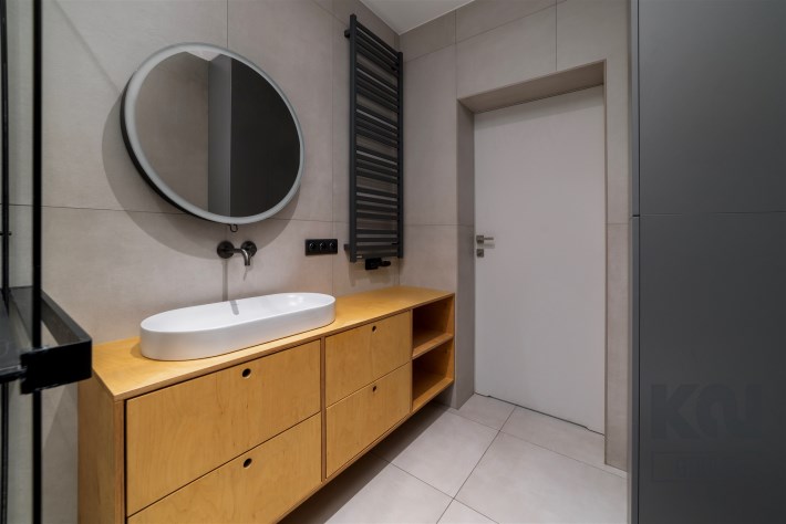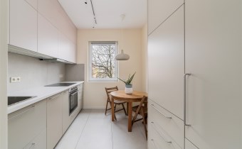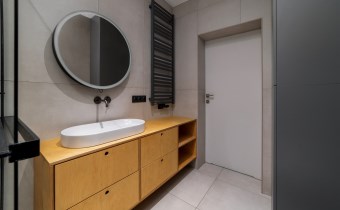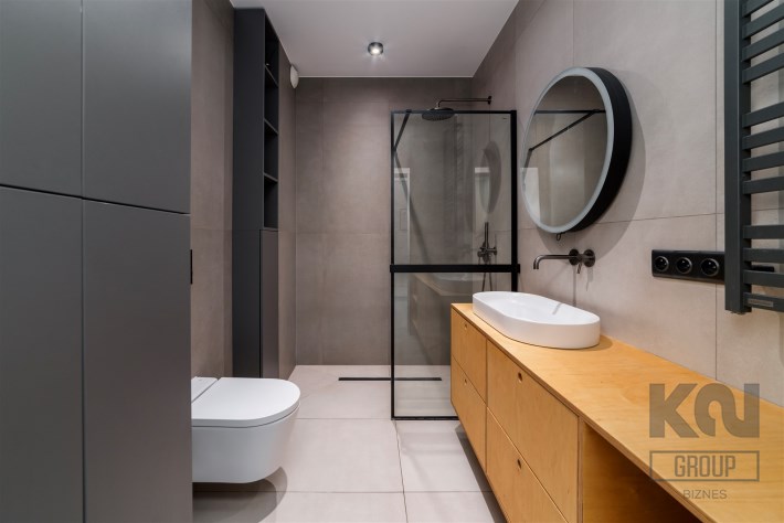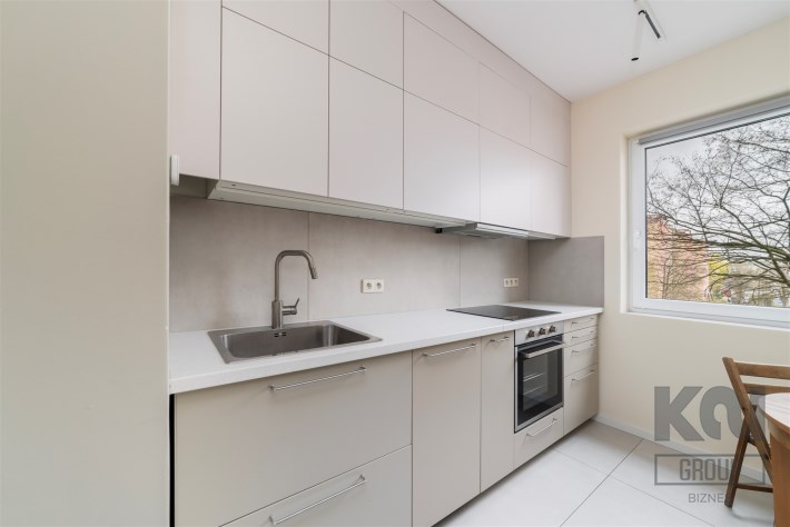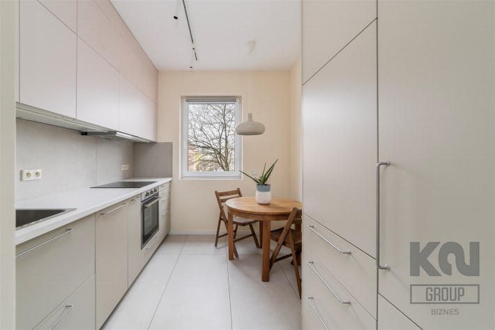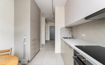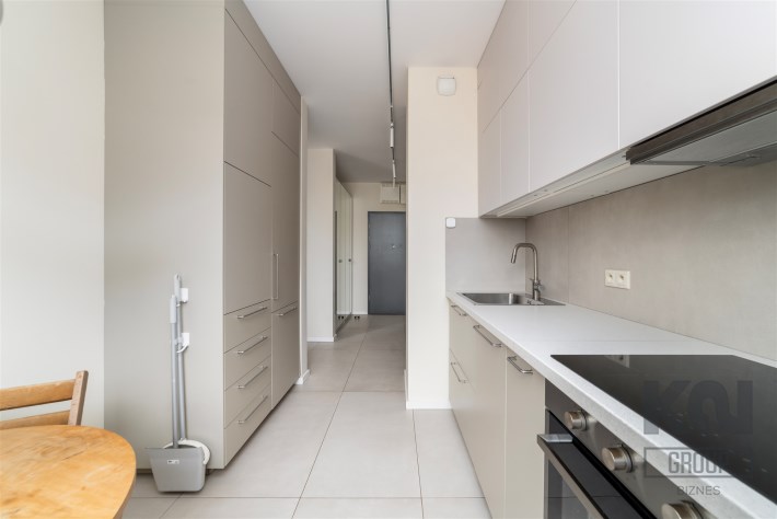 - oddzielną kuchnię wyposażoną w płytę indukcyjną, okap, piekarnik, lodówkę z zamrażarką oraz zmywarkę;