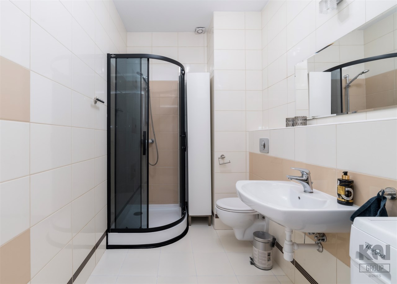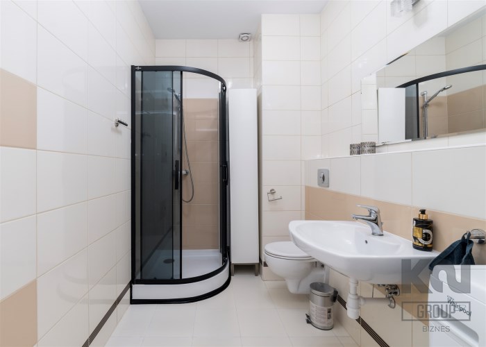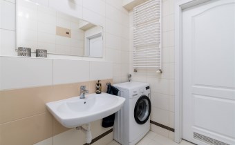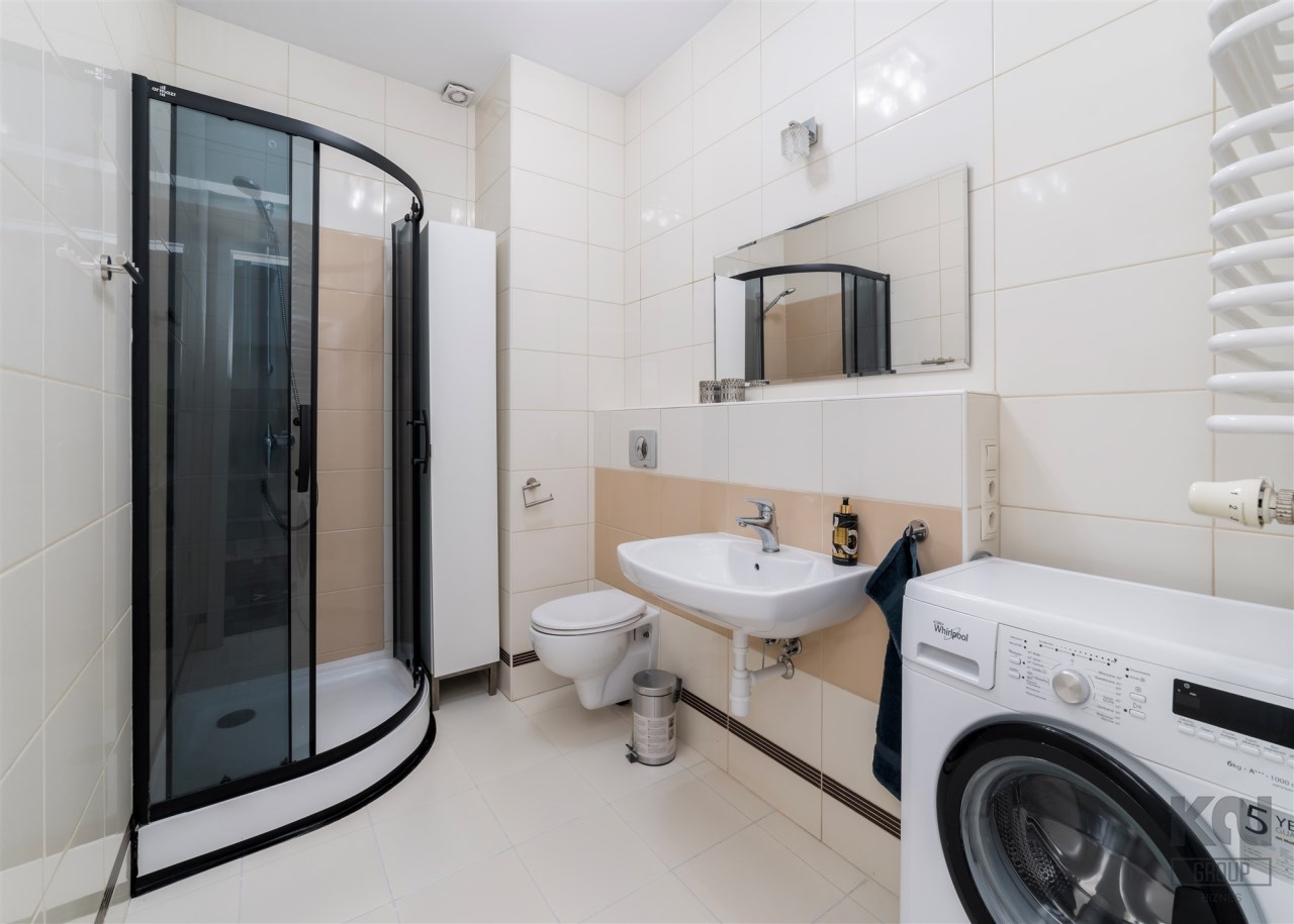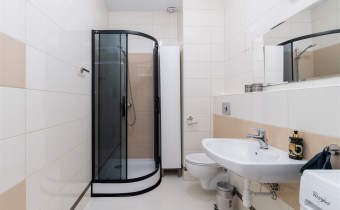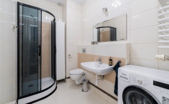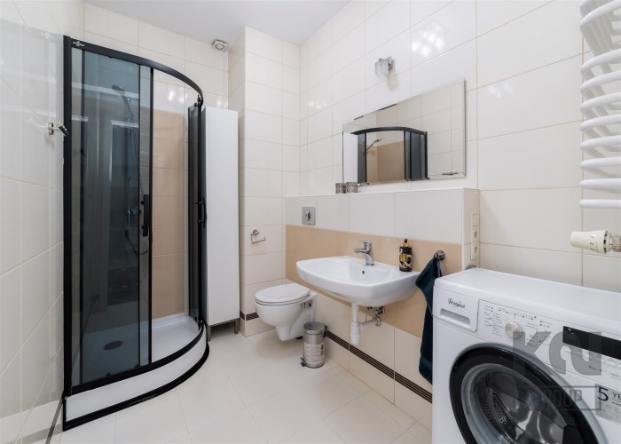 - łazienkę z WC (wyposażoną w prysznic, umywalkę i pralkę);