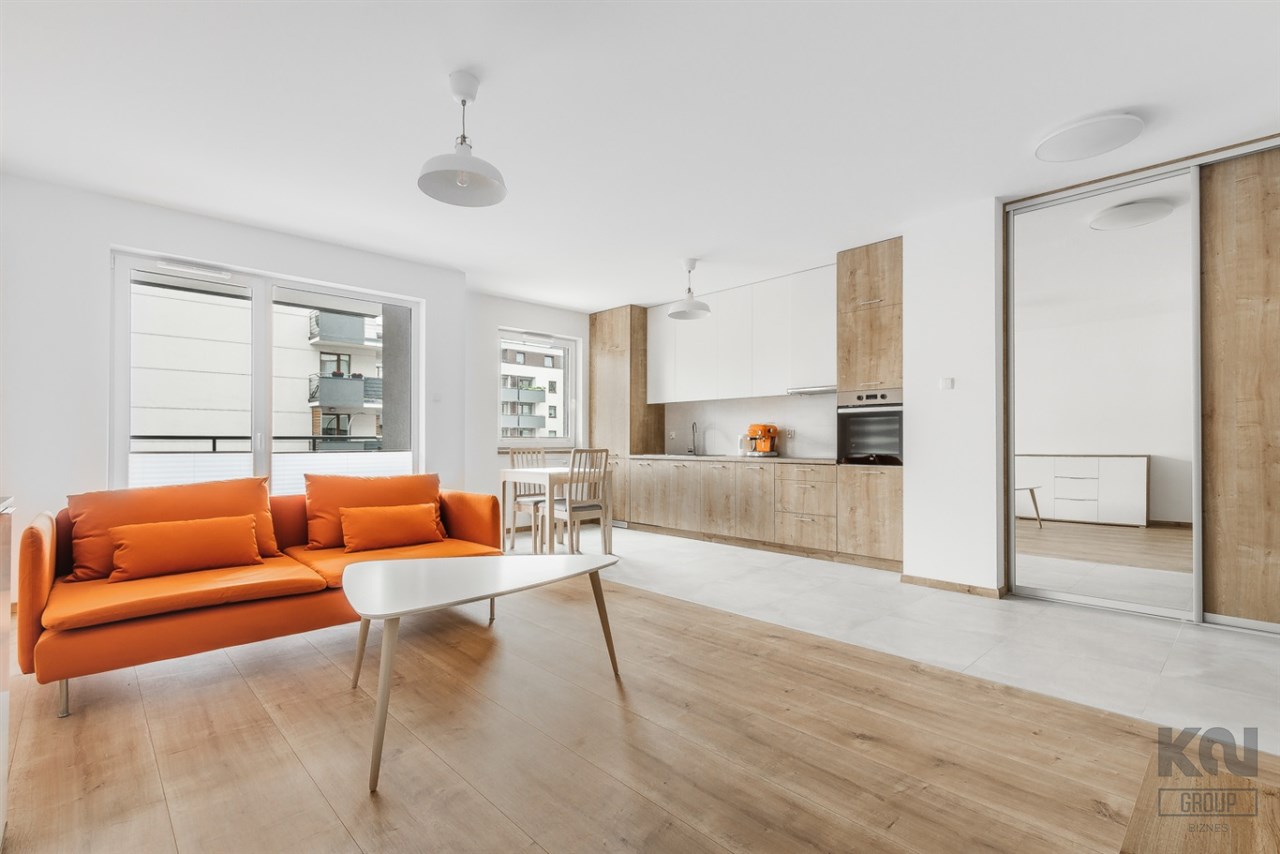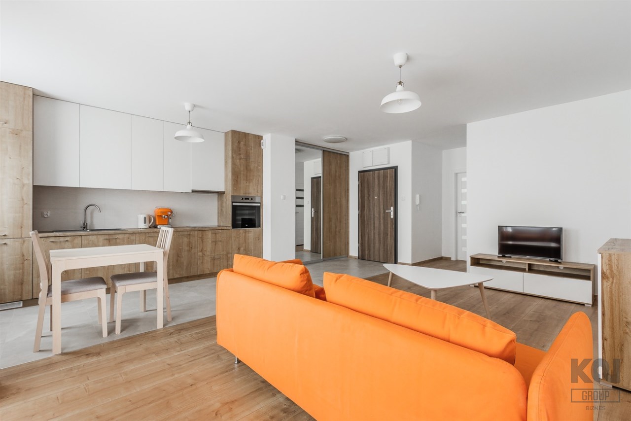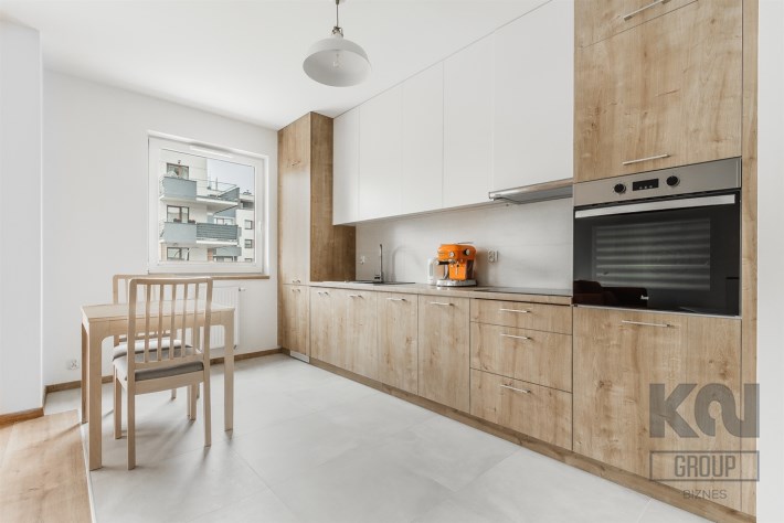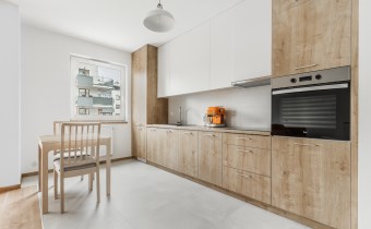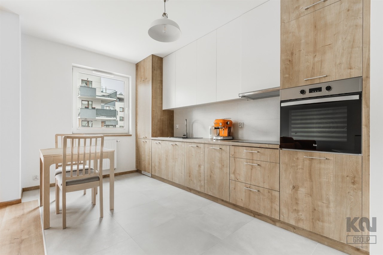 - funkcjonalny aneks kuchenny wyposażony w płytę indukcyjną, okap, piekarnik, lodówkę z zamrażarką i zmywarkę;