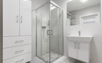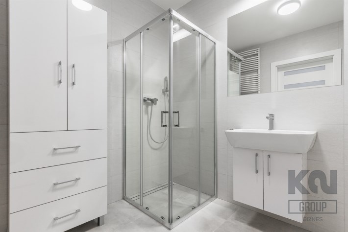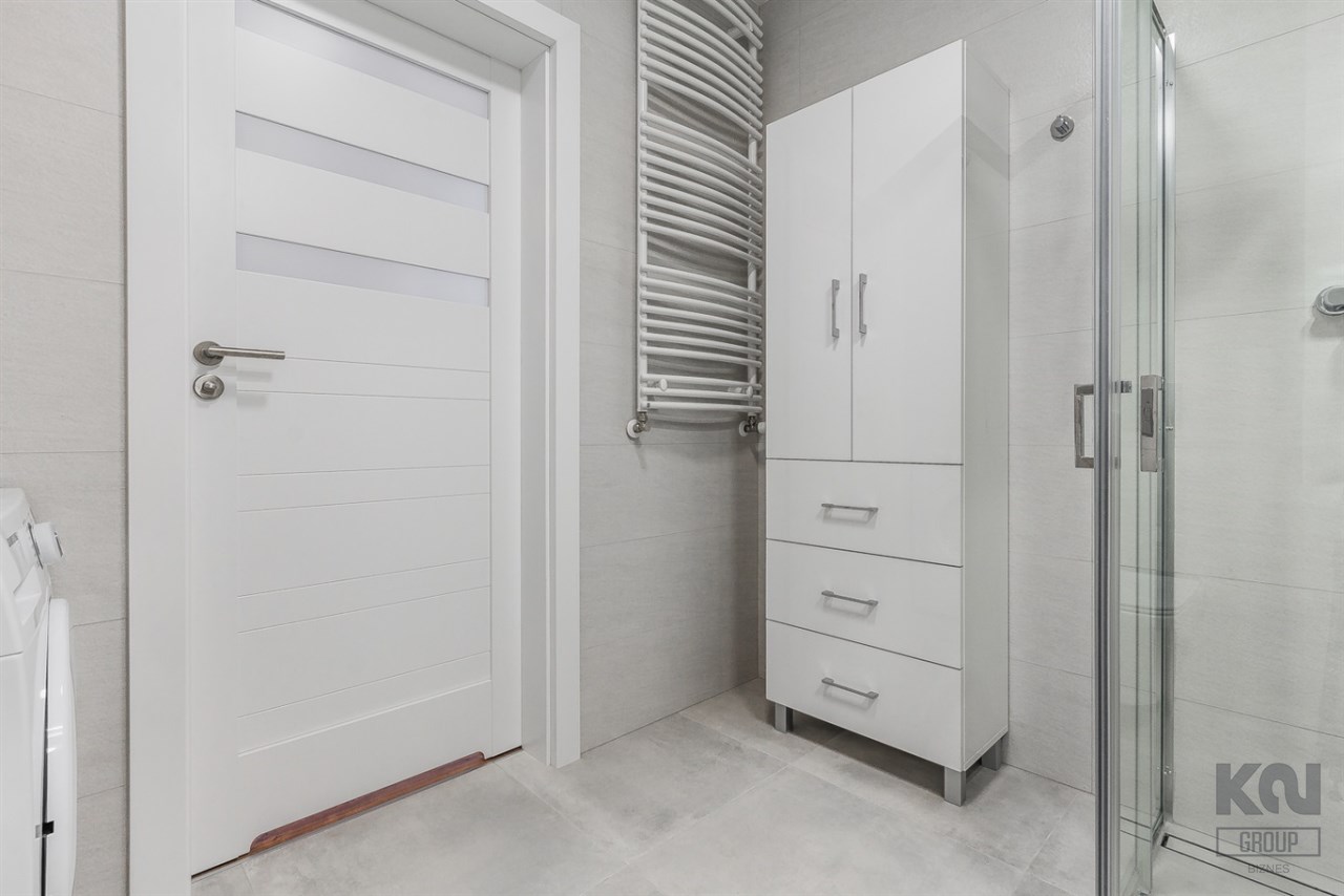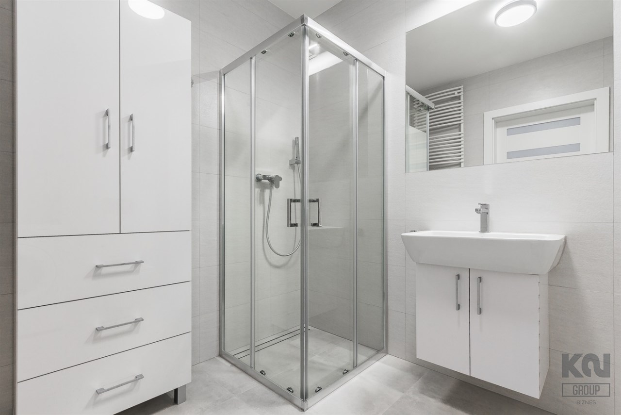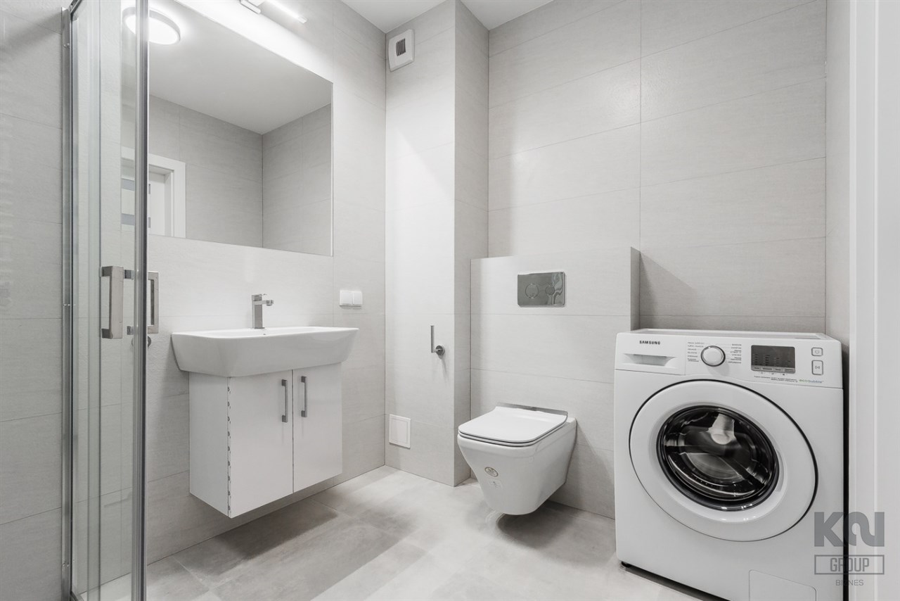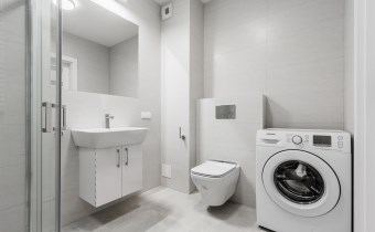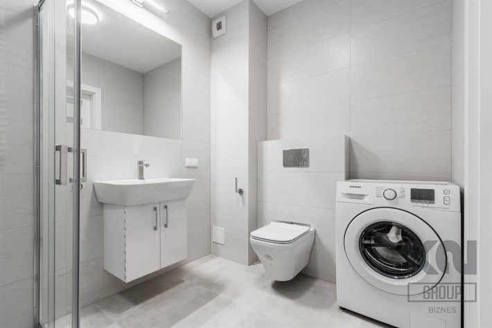 - komfortową łazienkę wyposażoną w natrysk oraz pralkę;