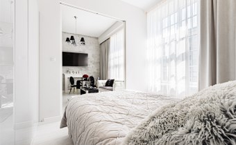 - sypialnia wyposażona w duże, wygodne łóżko oraz bardzo pojemne i funkcjonalne szafy;