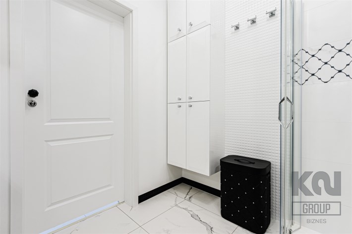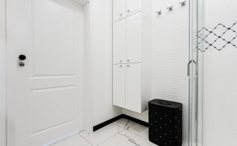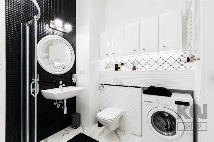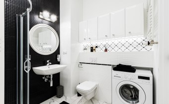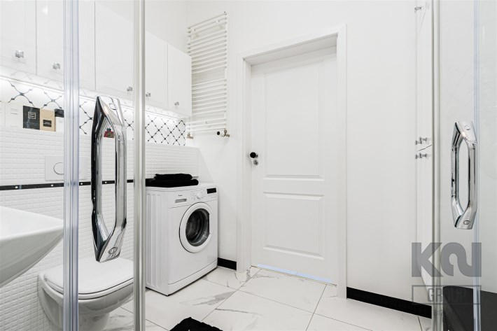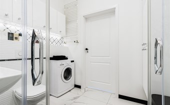 - łazienka z WC wyposażona w kabinę prysznicową i pralkę.