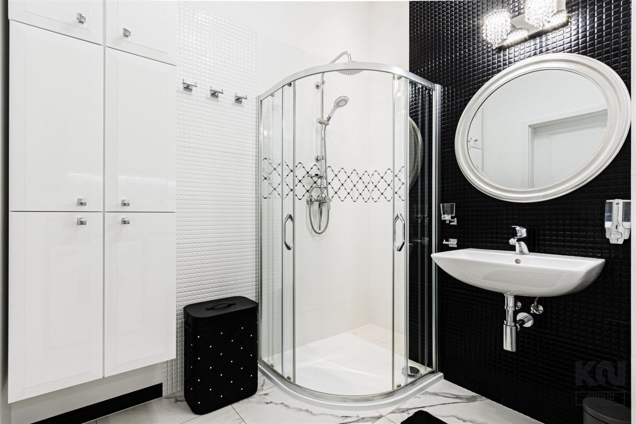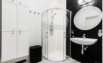 Wyposażenie łazienki umywalka, prysznic, lustro