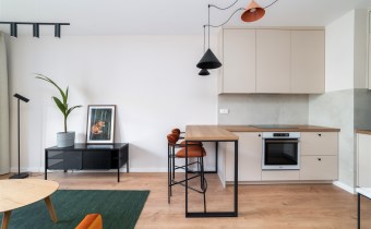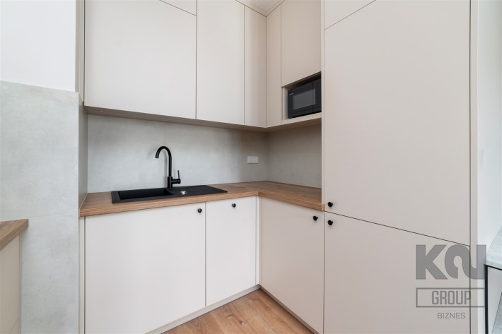 - aneks kuchenny wyposażony w płytę indukcyjną, piekarnik, mikrofalę, lodówko-zamrażarkę i zmywarkę;