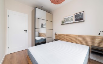 - sypialnię z dużym łóżkiem i pojemną szafą;