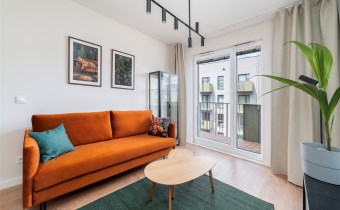 Przedstawiamy nowe, wykończone w wysokim standardzie, 2-pokojowe mieszkanie o powierzchni 38,55 m2 położone na czwartym piętrze w nowoczesnym kompleksie apartamentowców Fuzja przy ul. Milionowej 8 w Łodzi.