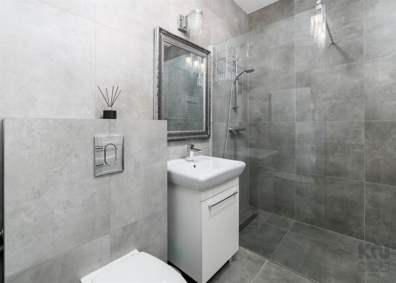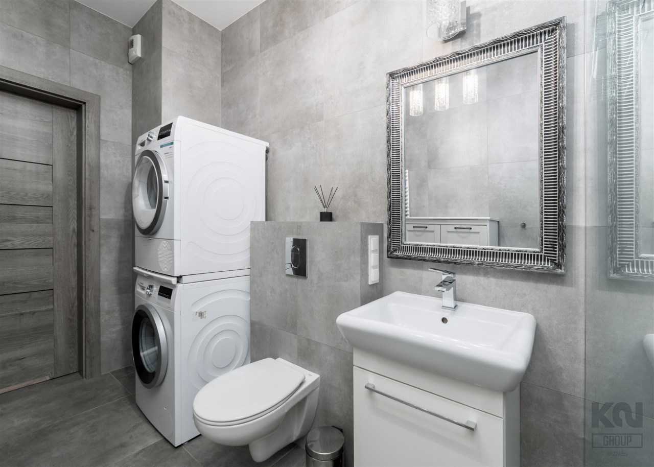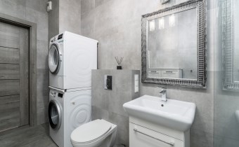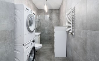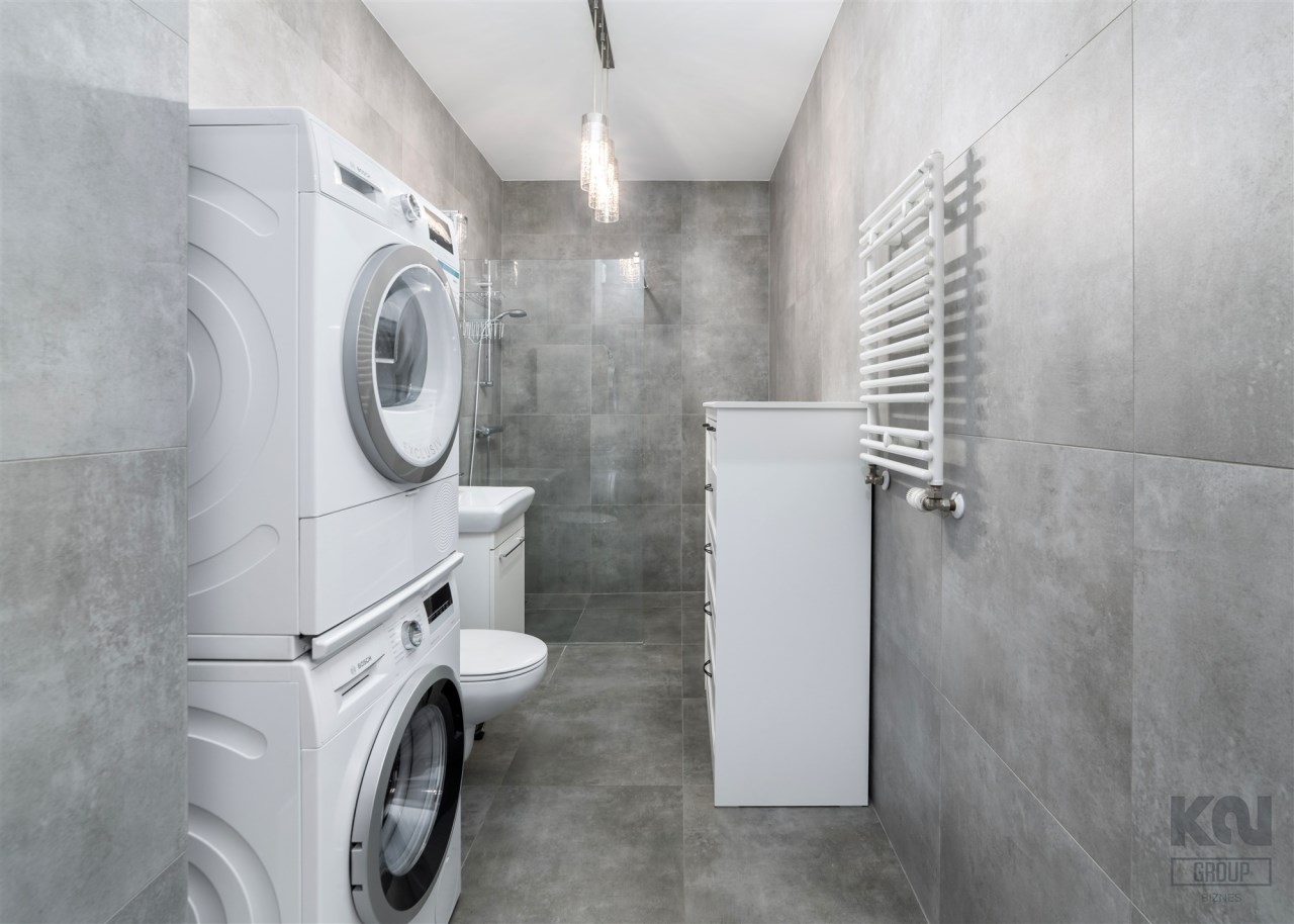 - nowoczesną łazienkę wyposażoną w natrysk, pralkę oraz suszarkę;