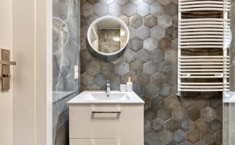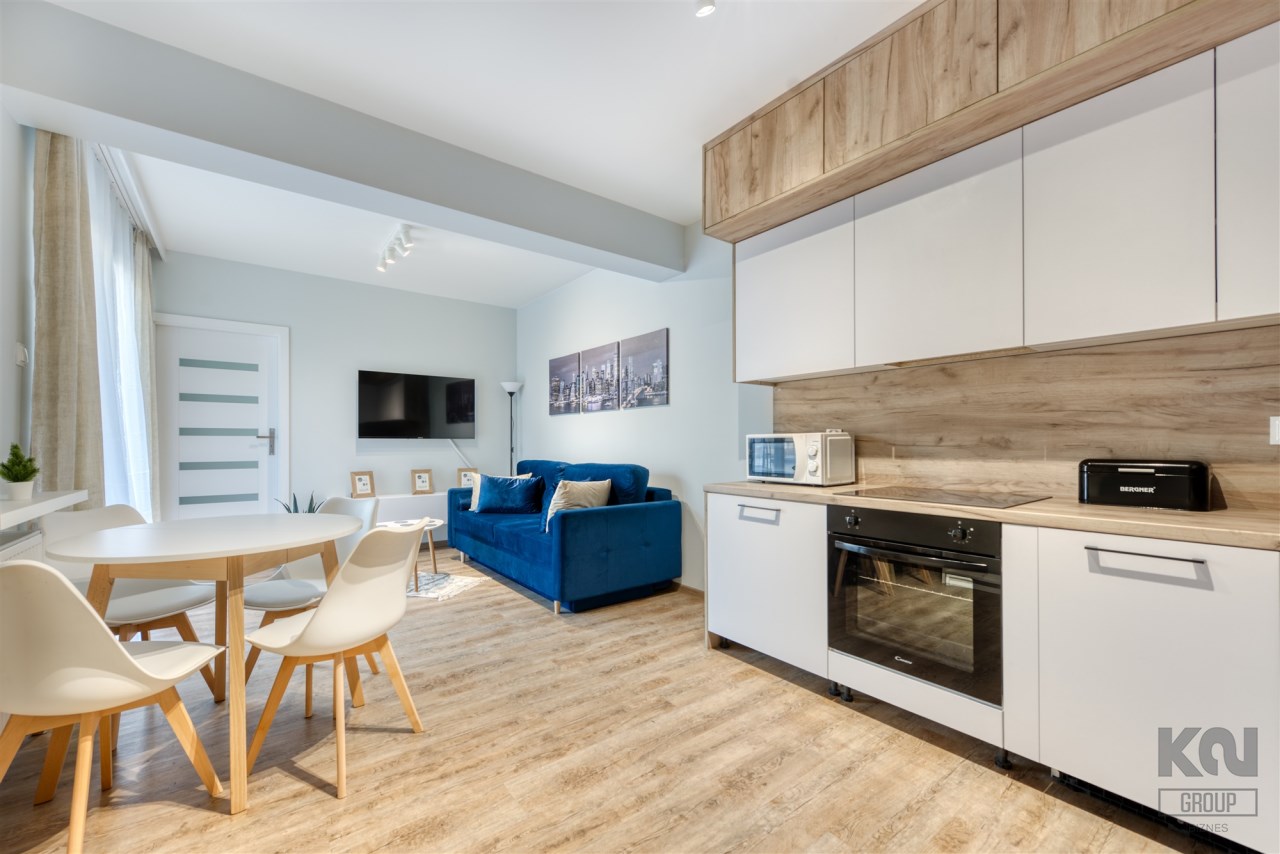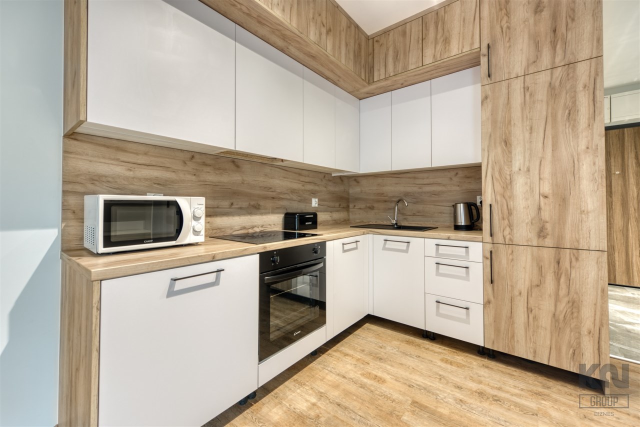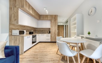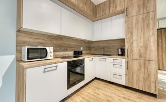 - aneks kuchenny (wyposażony w płytę indukcyjną, okap, piekarnik, mikrofalówkę, lodówkę z zamrażarką i zmywarkę);