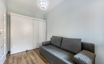- pokój (wyposażony w sofę z funkcją spania i pojemną szafę);