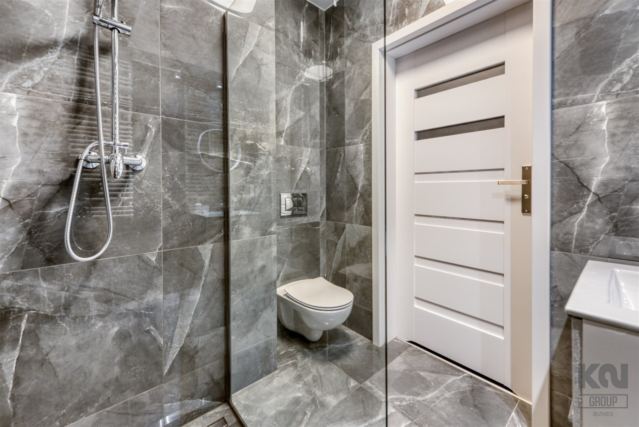 - nowoczesną łazienkę z WC (wyposażoną w natrysk oraz umywalkę);