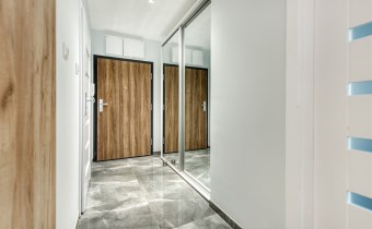 - przedpokój (wyposażony w pojemną szafę w zabudowie wraz z zabudowaną pralką).