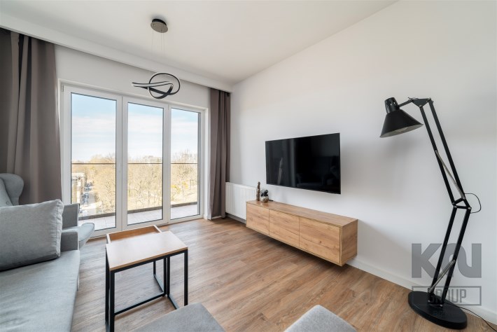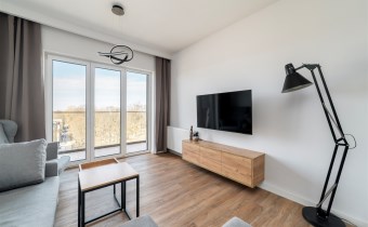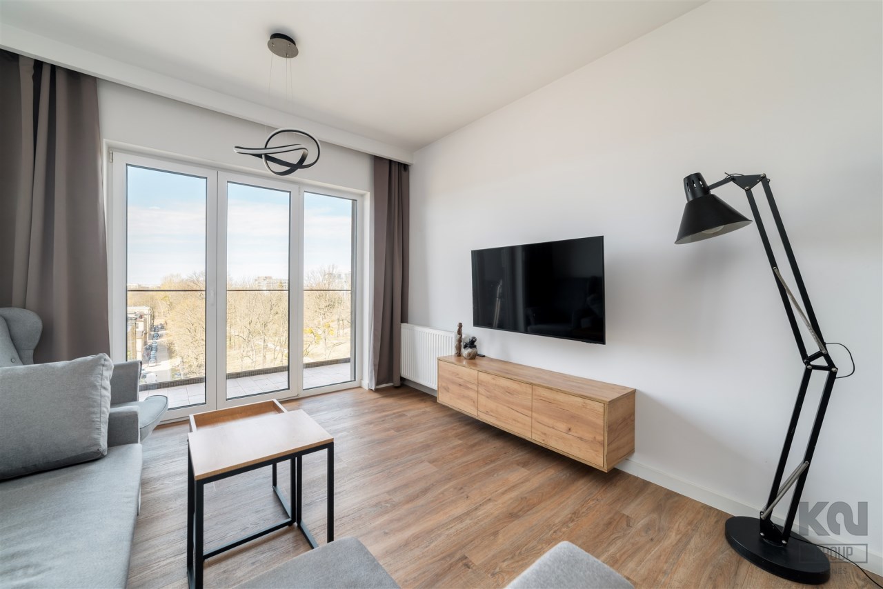 -wygodny pokój dzienny (wyposażony w kanapę, stolik kawowy i TV) z wyjściem na balkon z widokiem na park;