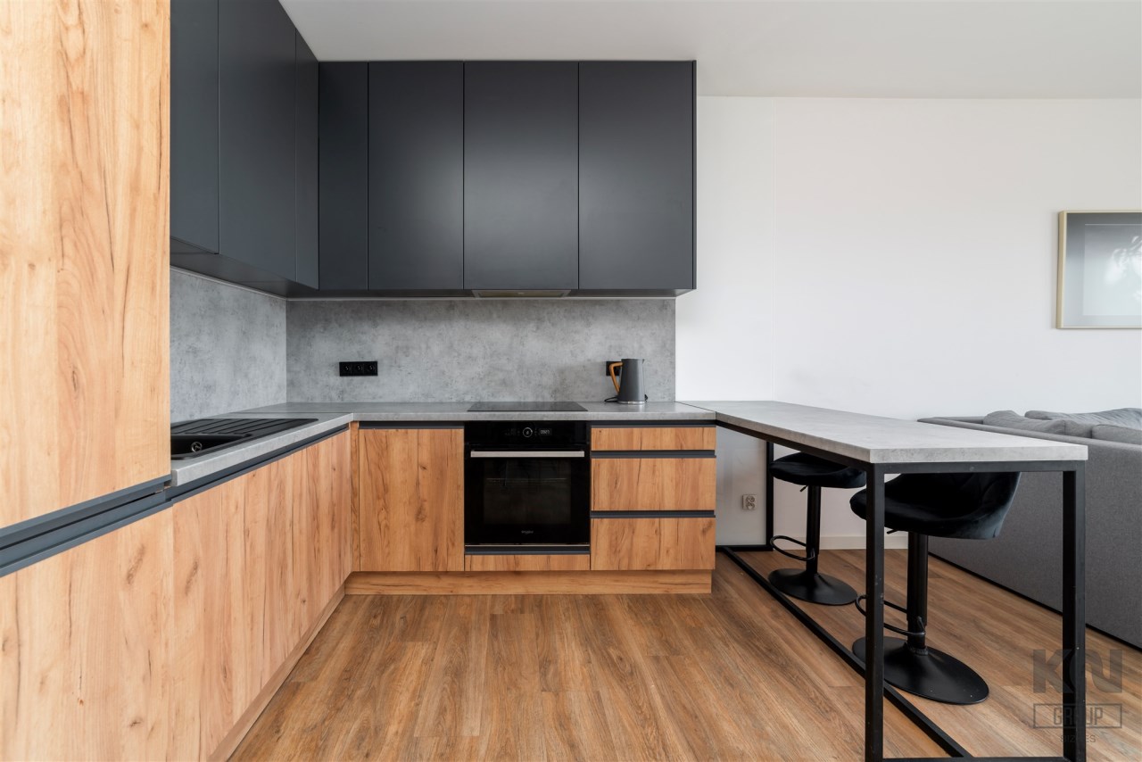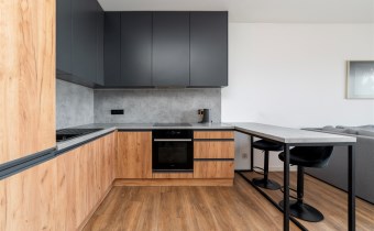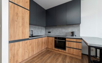 -funkcjonalny aneks kuchenny w zabudowie (płyta indukcyjna, okap, piekarnik, zmywarka, lodówko-zamrażarka);