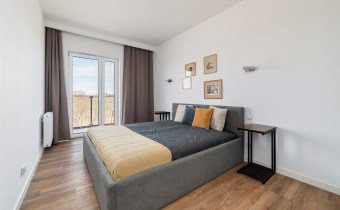 -przytulną sypialnię (z dużym łożem i szafą) z wyjściem na balkon;