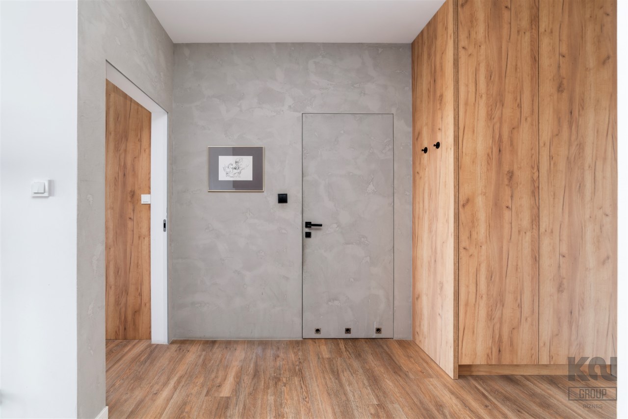-przedpokój z zabudowaną na wymiar szafą.
