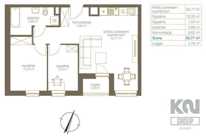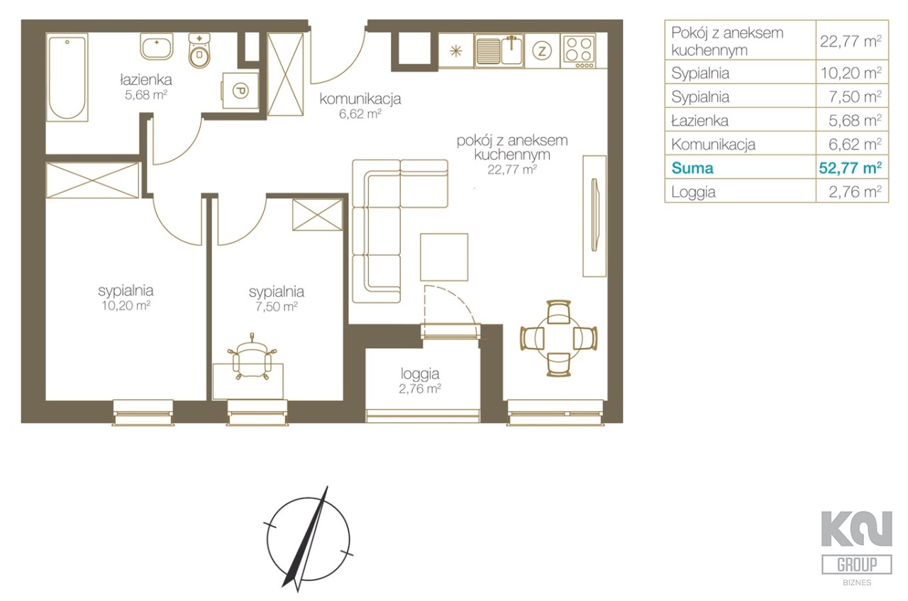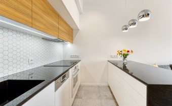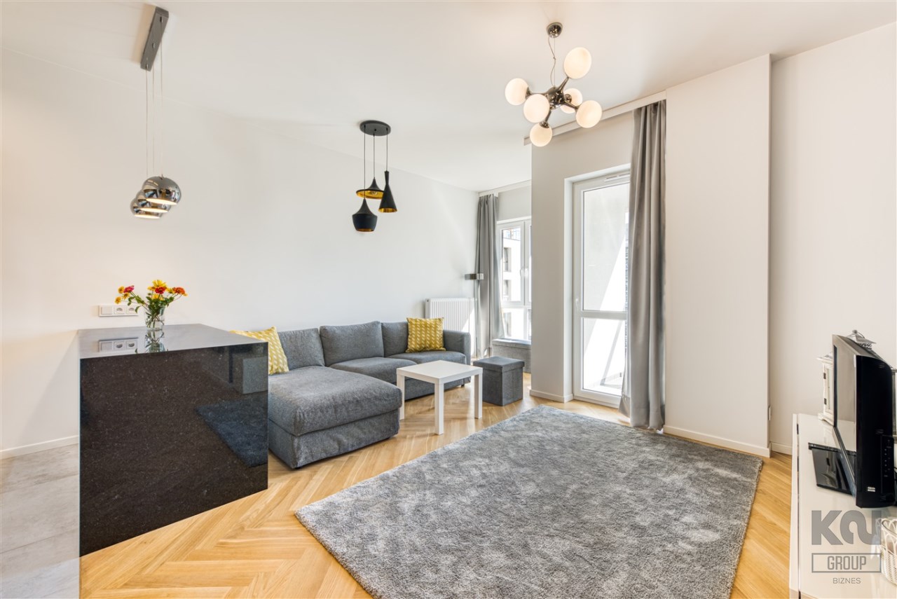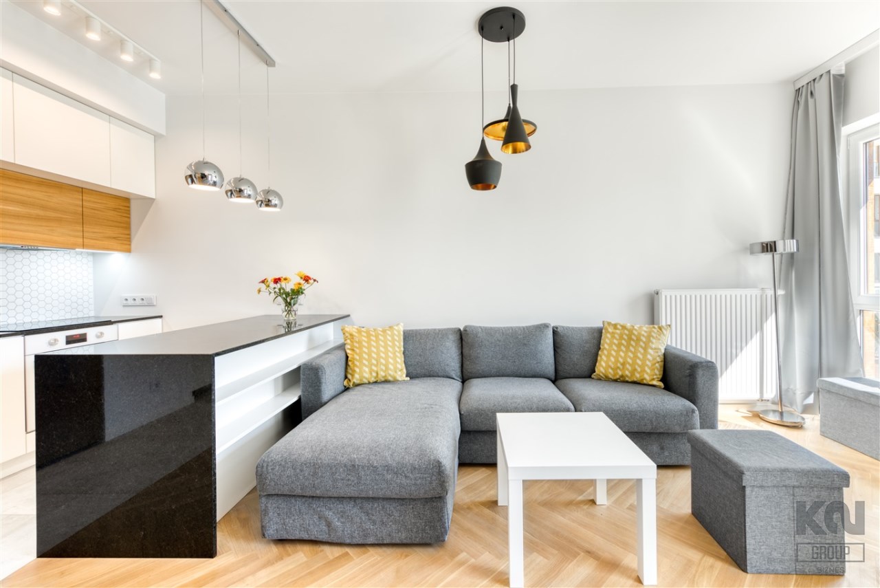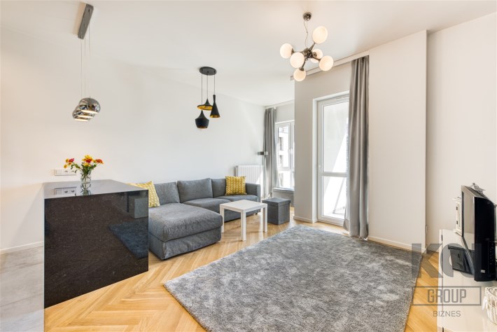 - kompletnie wyposażony aneks kuchenny (płyta indukcyjna, piekarnik, zmywarka, lodówko-zamrażarka);