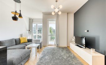 - przestronny, klimatyzowany pokój dzienny (wyposażony w narożnik, stolik kawowy, TV) z wyjściem na balkon;