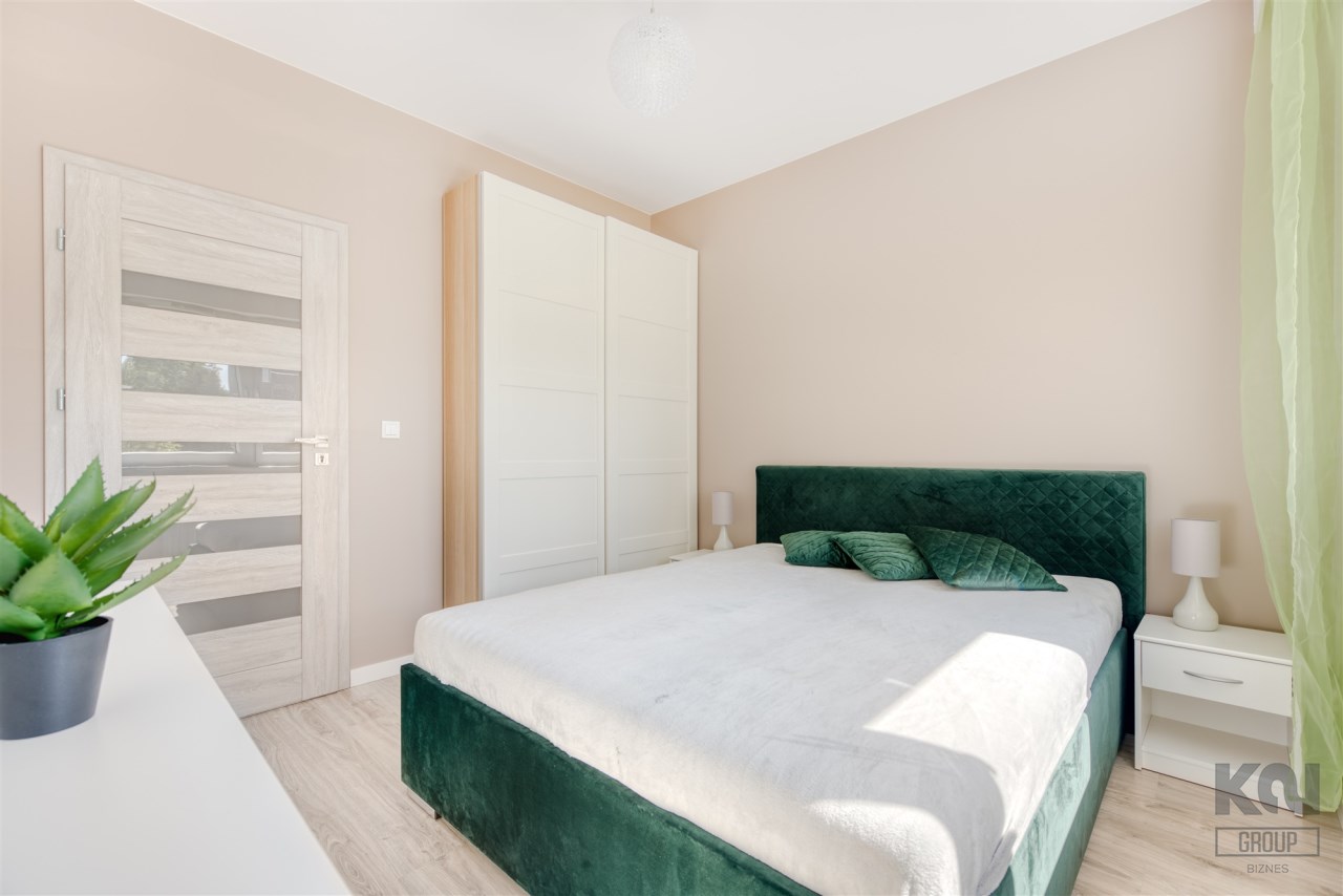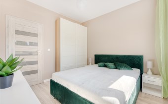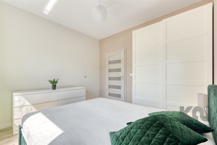 - przytulną sypialnię z dużym łóżkiem i szafą;