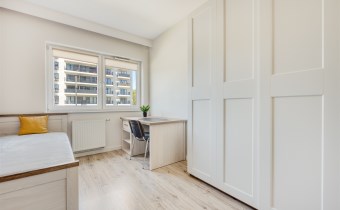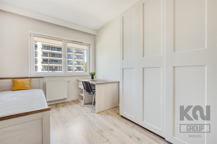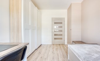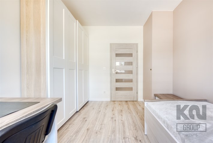 - drugi pokój mogący pełnić funkcję gabinetu lub pokoju dla dziecka (wyposażony w szafę, regał, biurko)