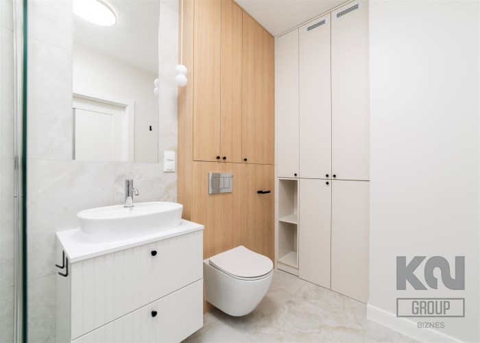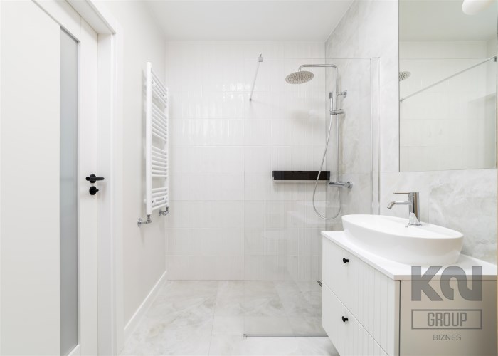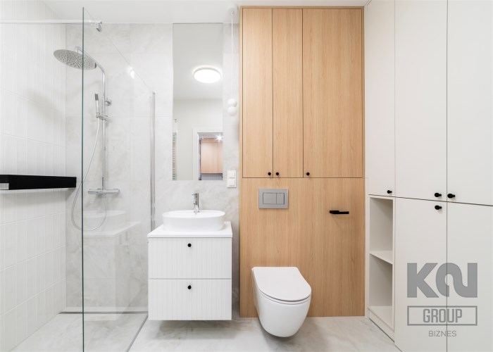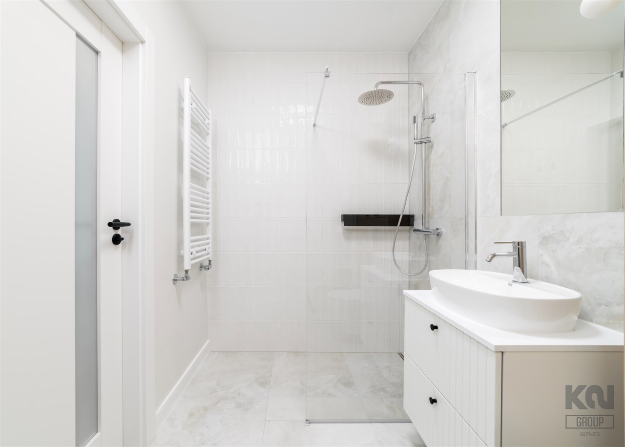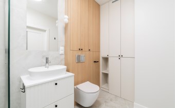 - nowoczesną łazienkę z WC wyposażoną w prysznic i pralkę;