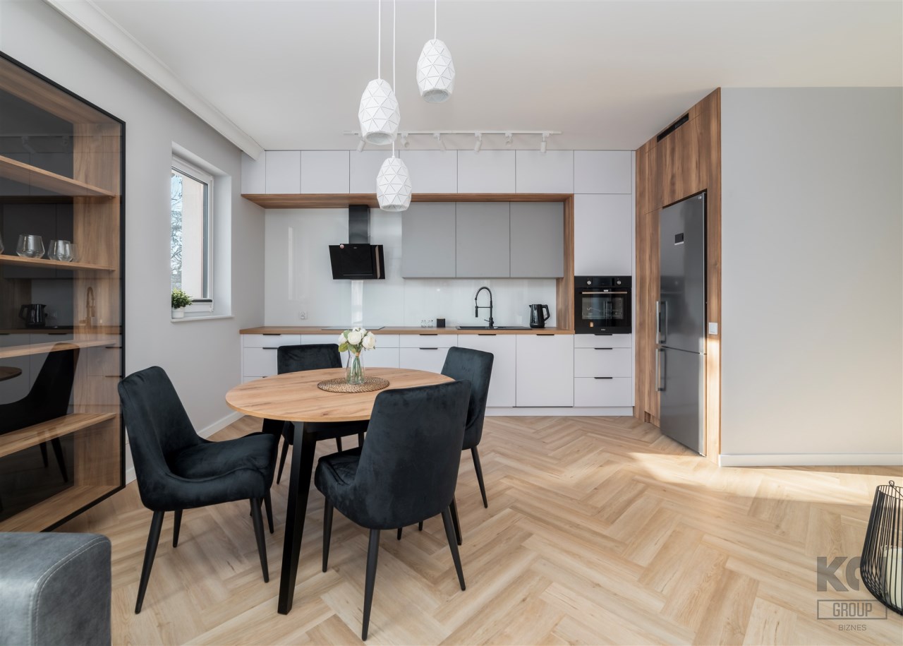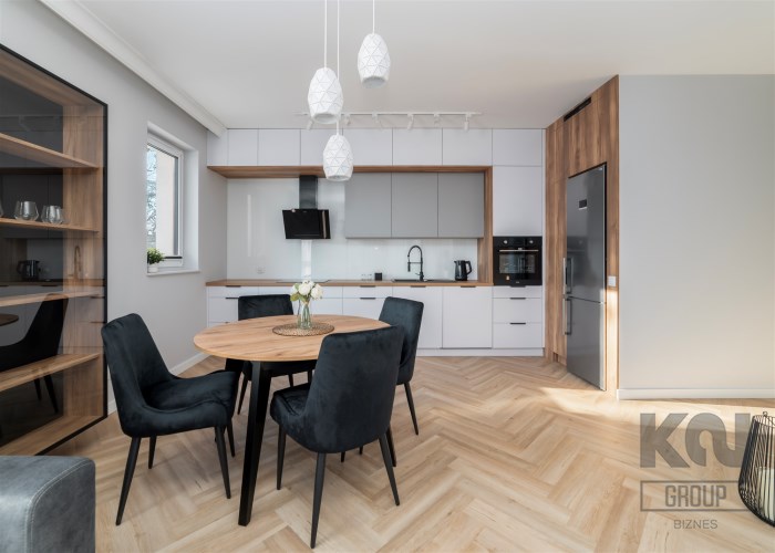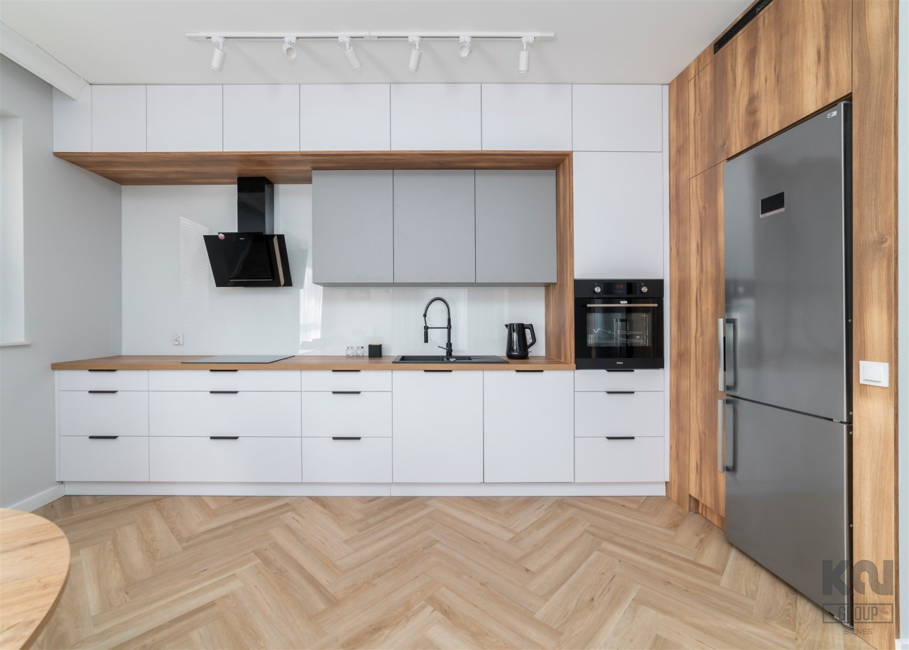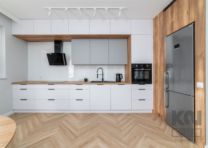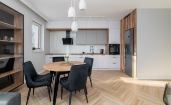 - aneks kuchenny wyposażony w płytę indukcyjną, okap, piekarnik, lodówko-zamrażarkę i zmywarkę;