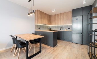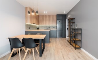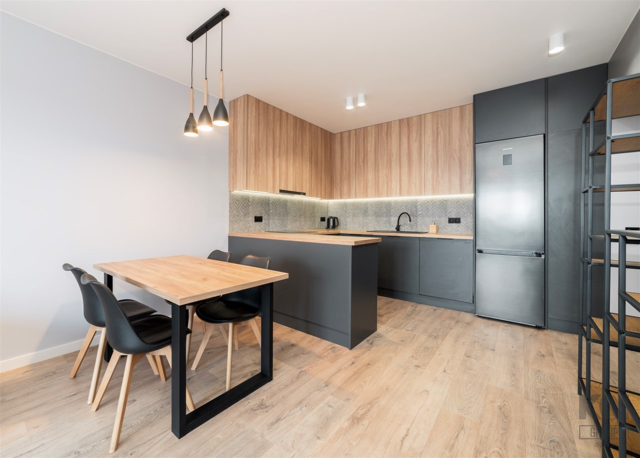 Apartament wykończony w wysokim standardzie, kompletnie umeblowany i wyposażony.
