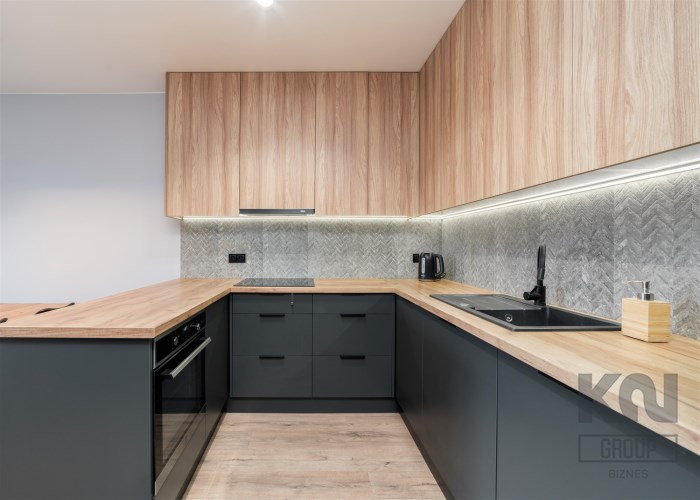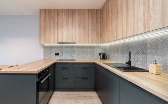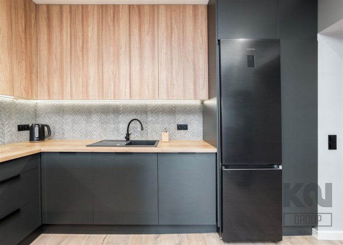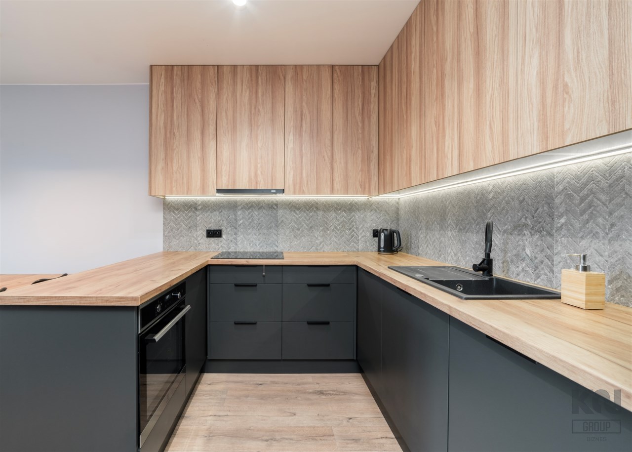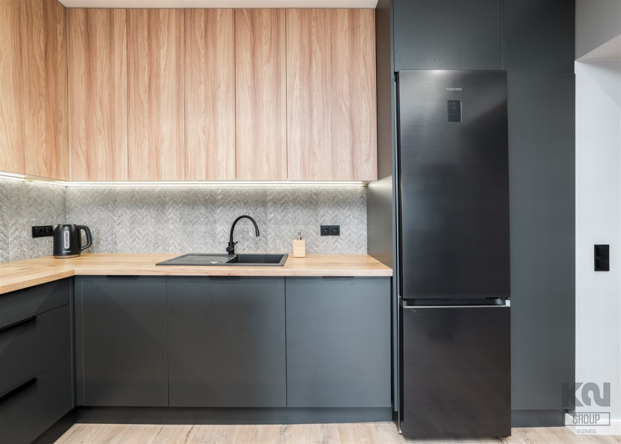 - aneks kuchenny wyposażony w płytę indukcyjną, okap, piekarnik, lodówkę z zamrażarką oraz zmywarkę;