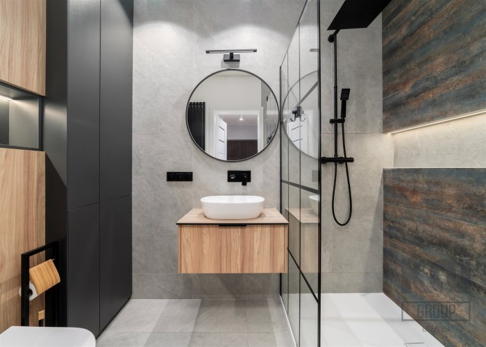 - łazienkę z WC wyposażoną w natrysk oraz pralkę;