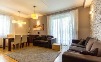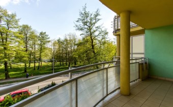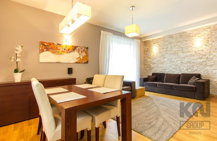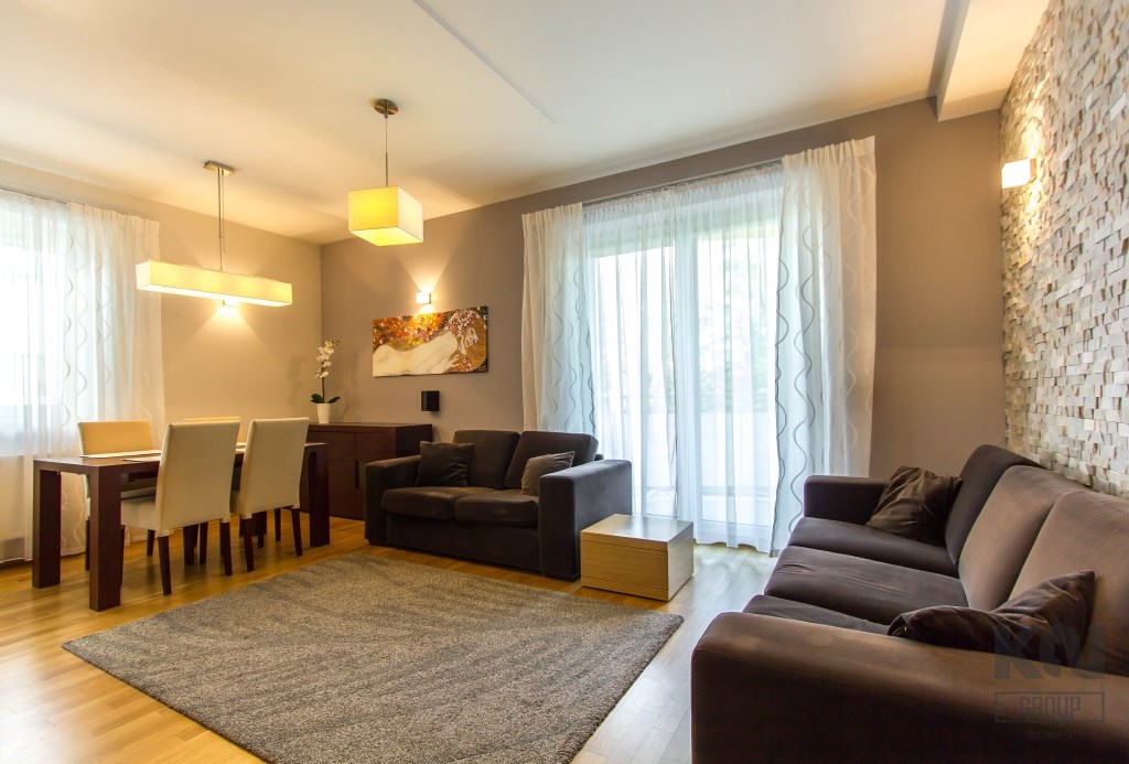 - słoneczny salon z częścią jadalną i bezpośrednim wyjściem na duży balkon;