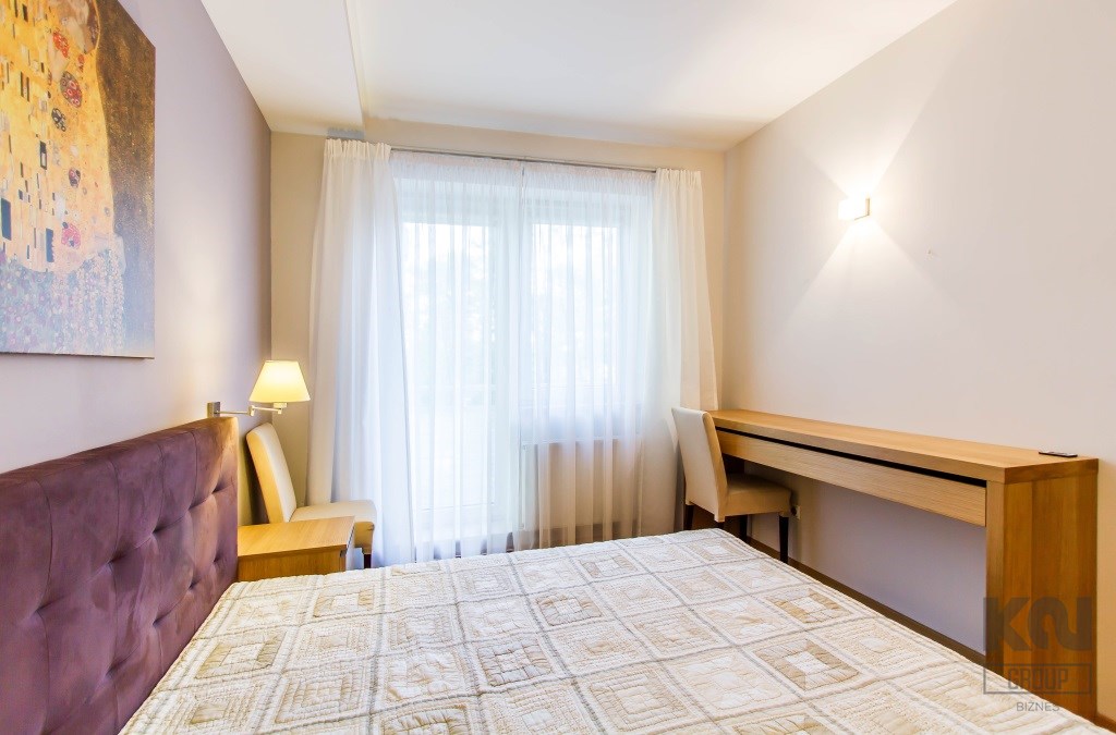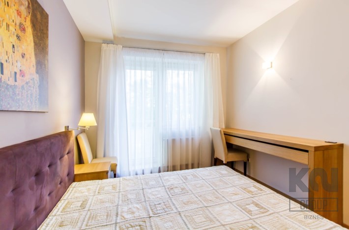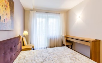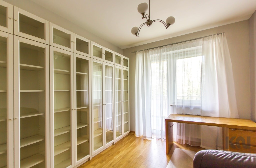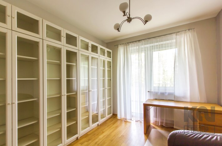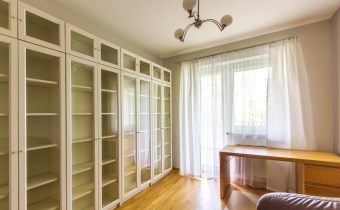 - gabinet z dużą biblioteczką oraz biurkiem i wyjściem na balkon;