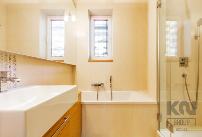 - nowoczesną łazienkę wyposażoną w prysznic oraz wannę;