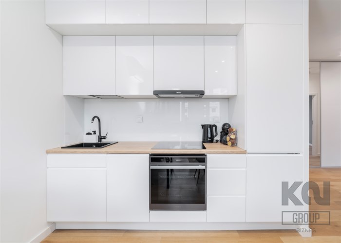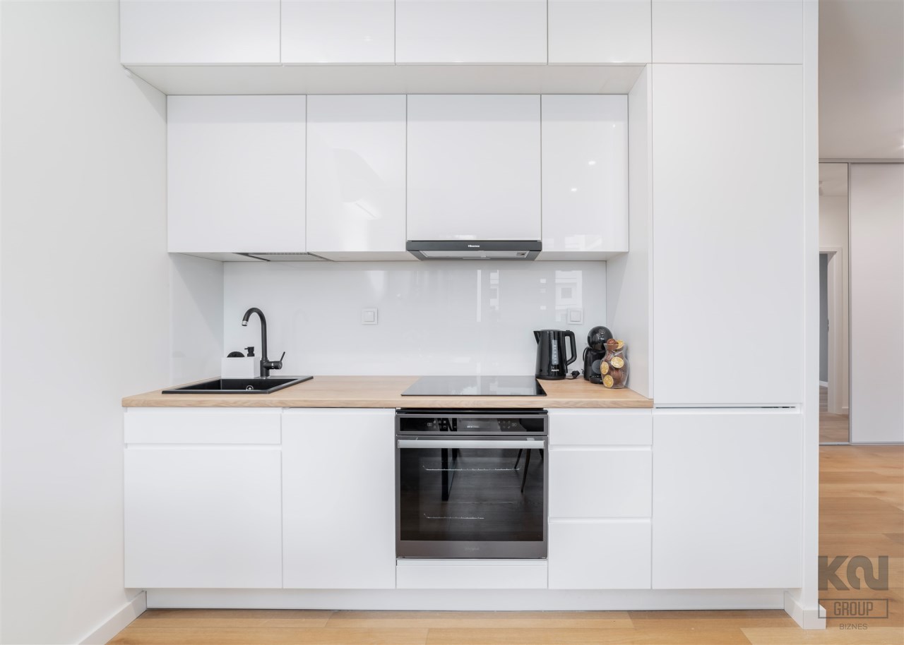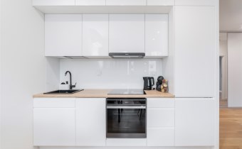 - funkcjonalny aneks kuchenny wyposażony w lodówkę z zamrażarką, piekarnik, płytę indukcyjną, okap oraz zmywarkę;