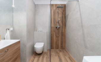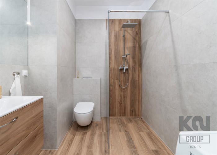 - oryginalną łazienkę z WC wyposażoną w natrysk oraz