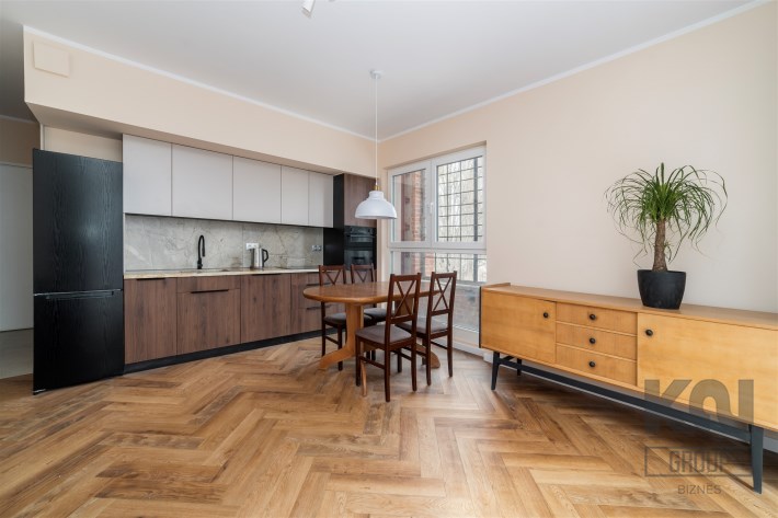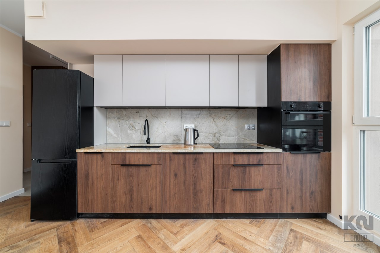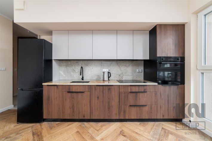 - aneks kuchenny wyposażony w płytę indukcyjną, piekarnik, lodówko-zamrażarkę i zmywarkę;