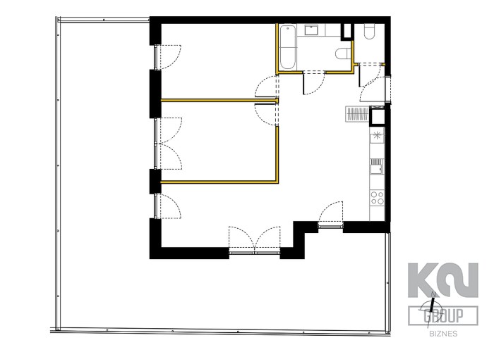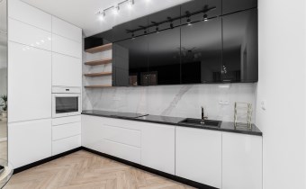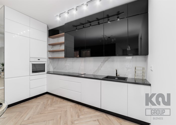 - aneks kuchenny (wyposażony w zmywarkę, płytę indukcyjną, okap, piekarnik, lodówko-zamrażarkę);