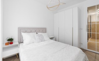 - komfortową sypialnię z wygodnym łóżkiem i pojemną szafą;