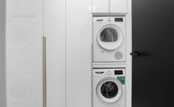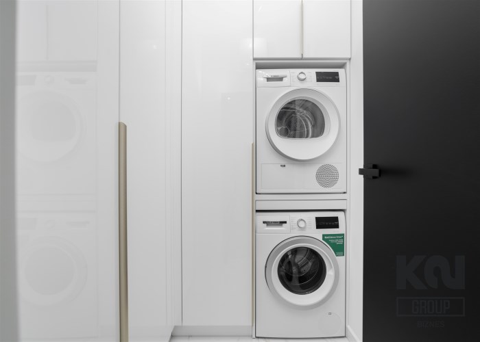 - pojemną garderobę wyposażoną w pralkę i suszarkę;