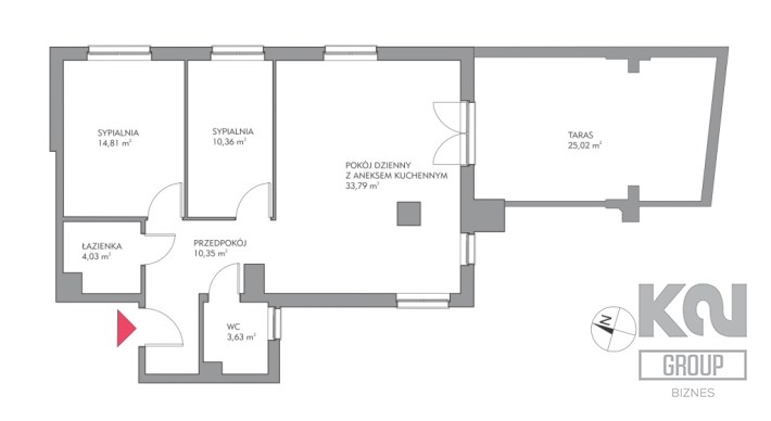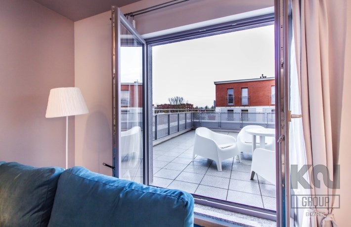 - przestronny pokój dzienny z aneksem kuchennym i bezpośrednim wyjściem na słoneczny taras;