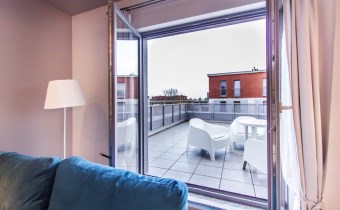 Do wynajęcia luksusowy i przestrzenny penthouse urządzony zgodnie z najnowszymi trendami wnętrzarskimi o powierzchni 77,17 m2 położony na ostatnim, czwartym piętrze w kompleksie nowoczesnych budynków w samym centrum Łodzi przy ul. Tylnej.