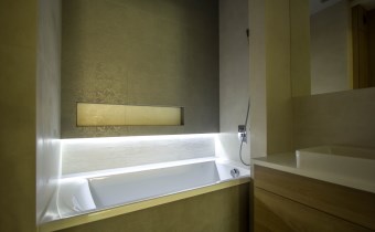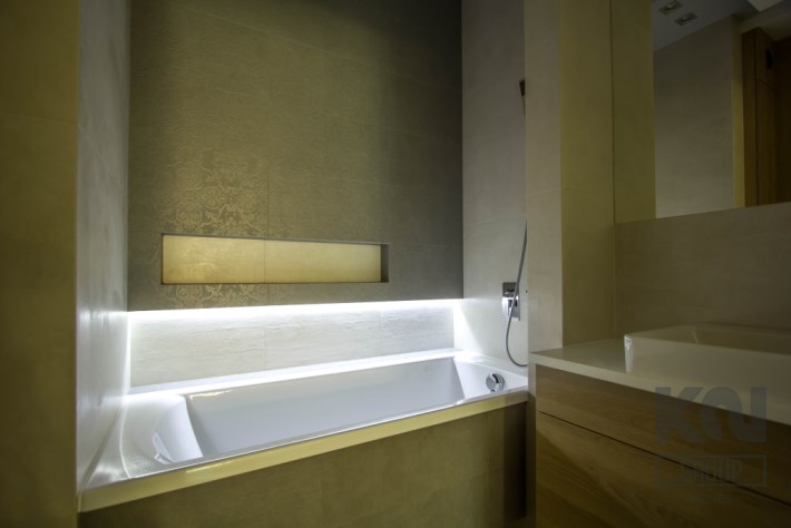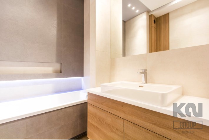 - niezwykle wyjątkowe miejsce w apartamencie stanowi łazienka: na ścianach najlepsza glazura, na podłodze gres. Wszystko doskonale urządzone i przemyślane, tworzące piękną kompozycję;