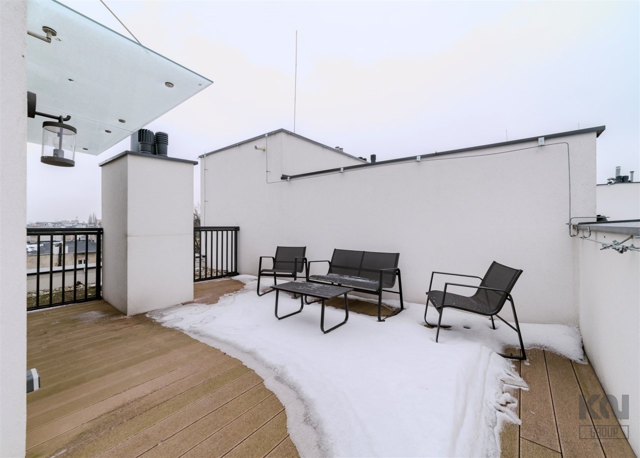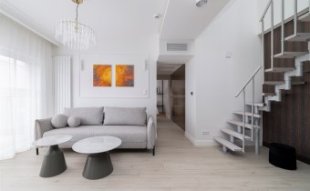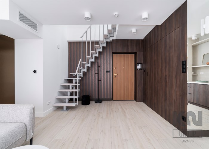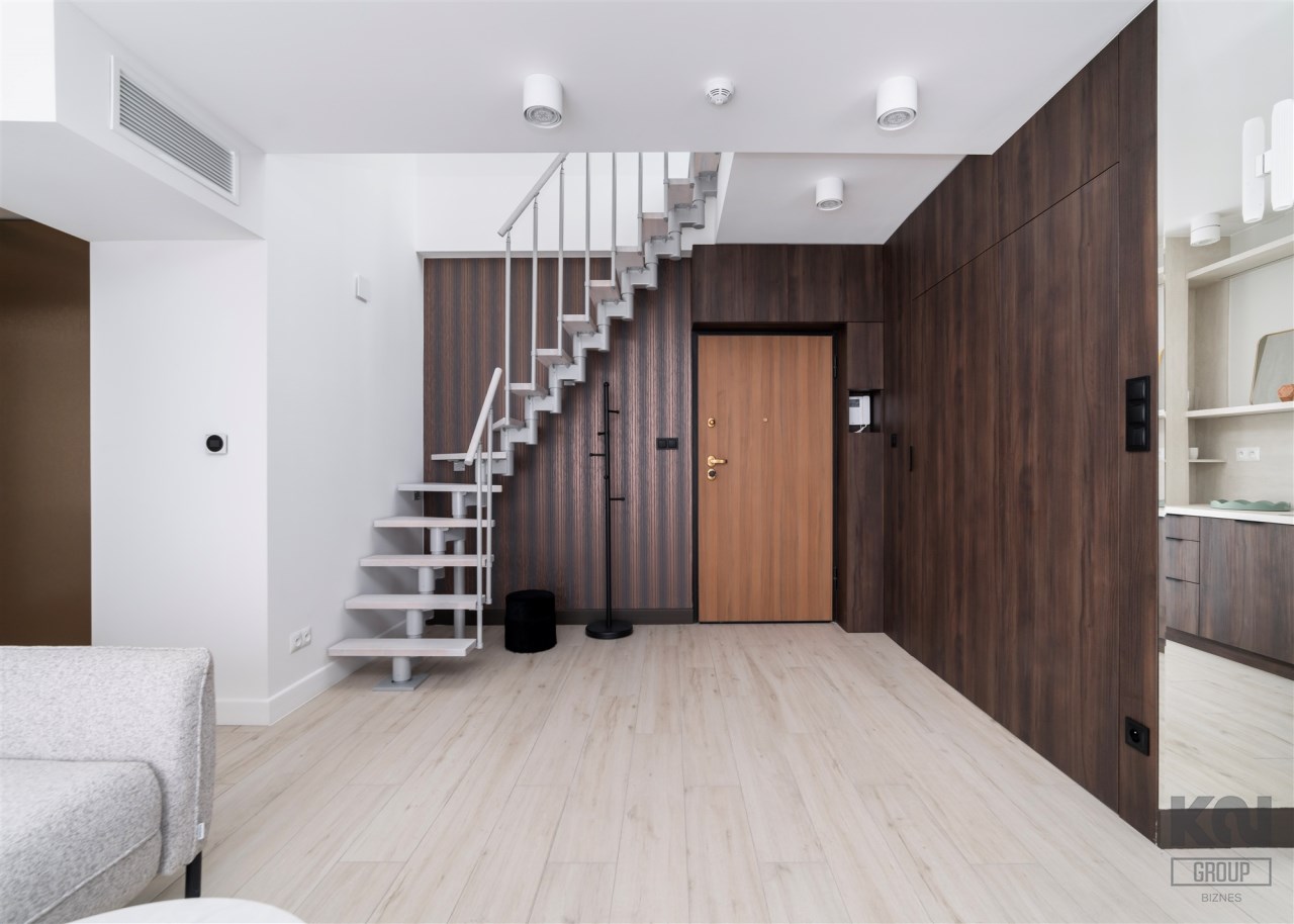 Apartament jest klimatyzowany i posiada inteligentny system smart home, który znacząco ułatwia codzienne funkcjonowanie — zdalne sterowanie ogrzewaniem, oświetleniem oraz zamkami podnosi komfort i bezpieczeństwo.